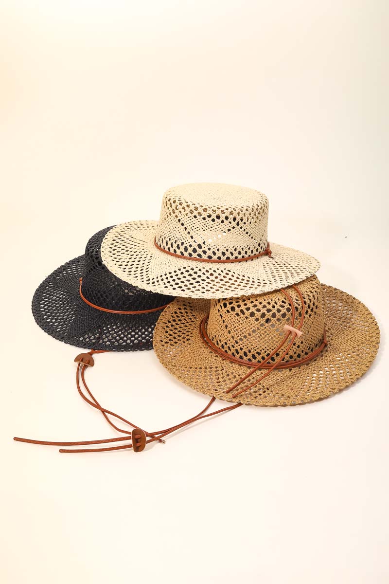 Straw Weave Leather Strap Cowboy Hat
