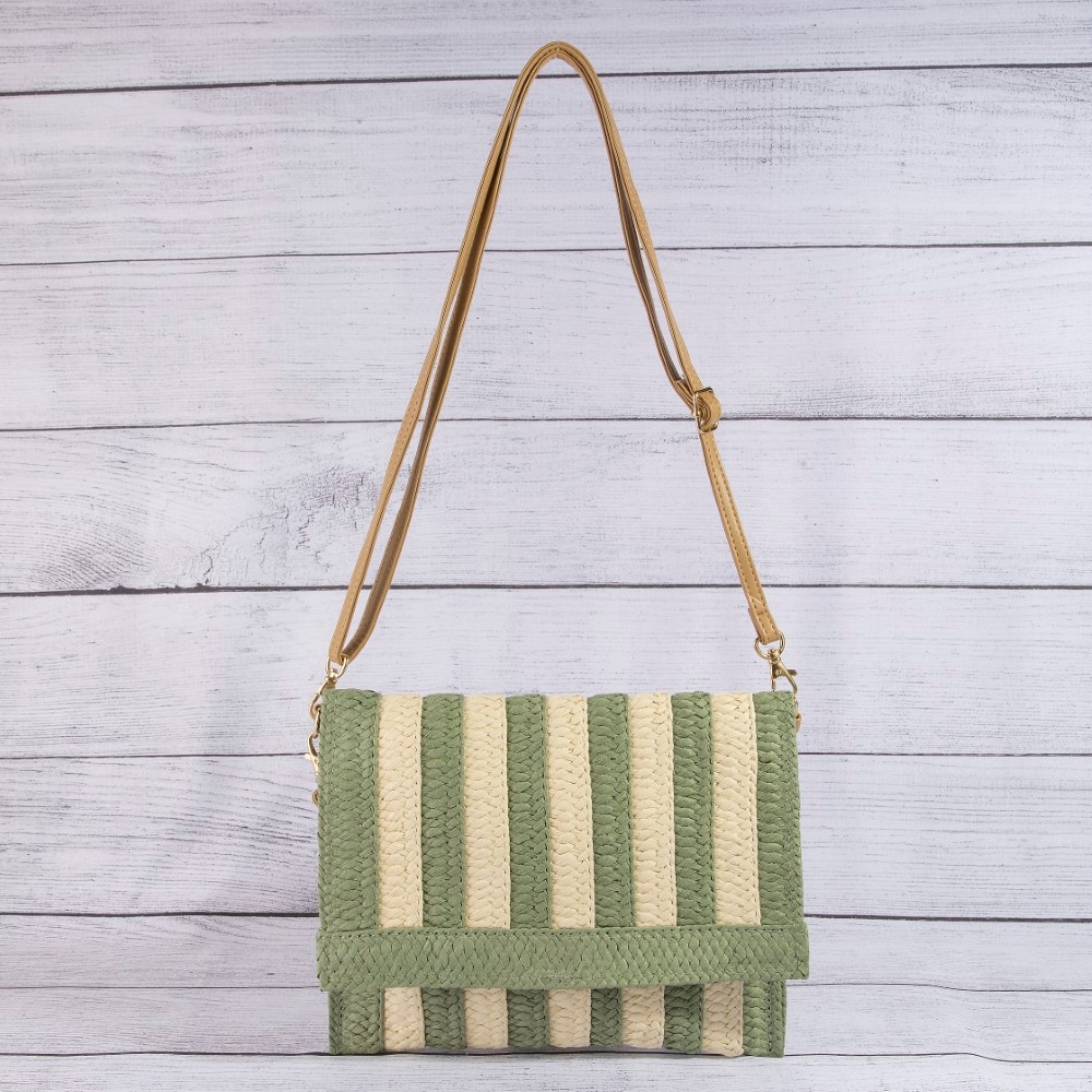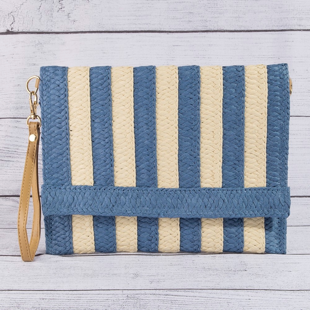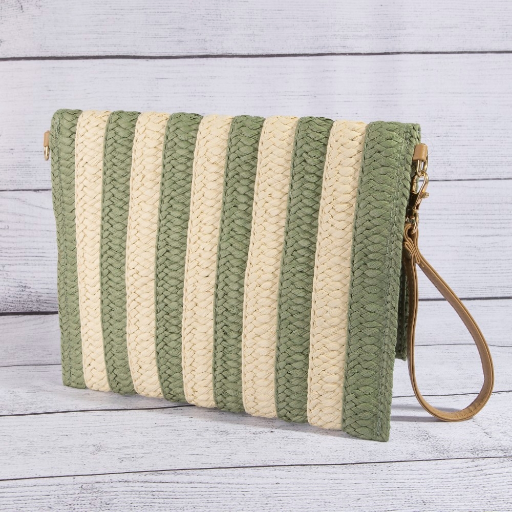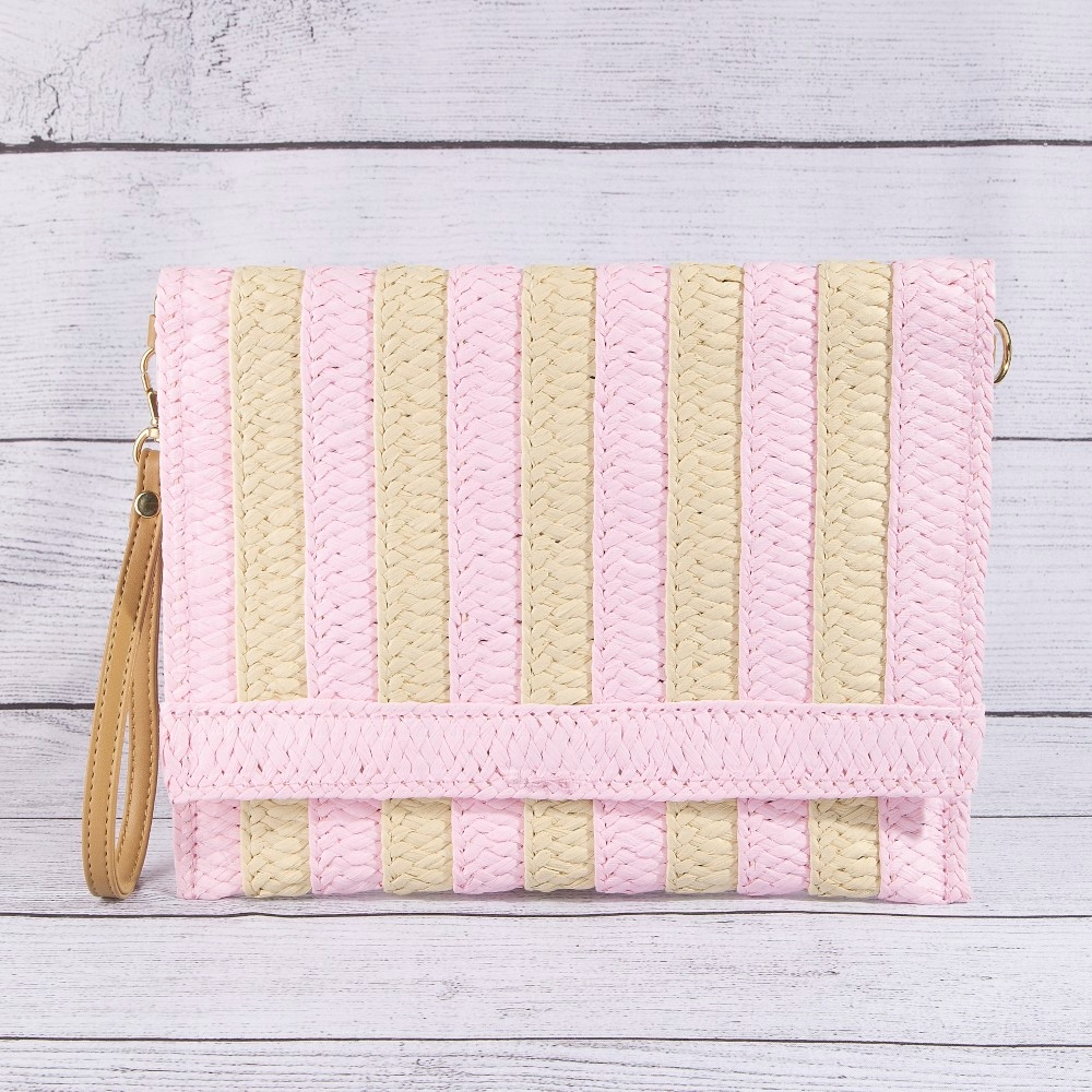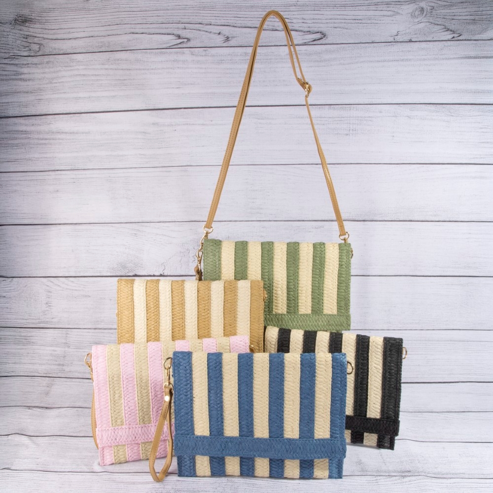 • This piece is designed to be both stylish and functional, this clutch bag adds a distinctive two tone striped straw design. This clutch bag is the perfect way to add a touch of elegance to any outfit. Available in B, BL, KH, OL, PN. This item is sold in packs of 1.