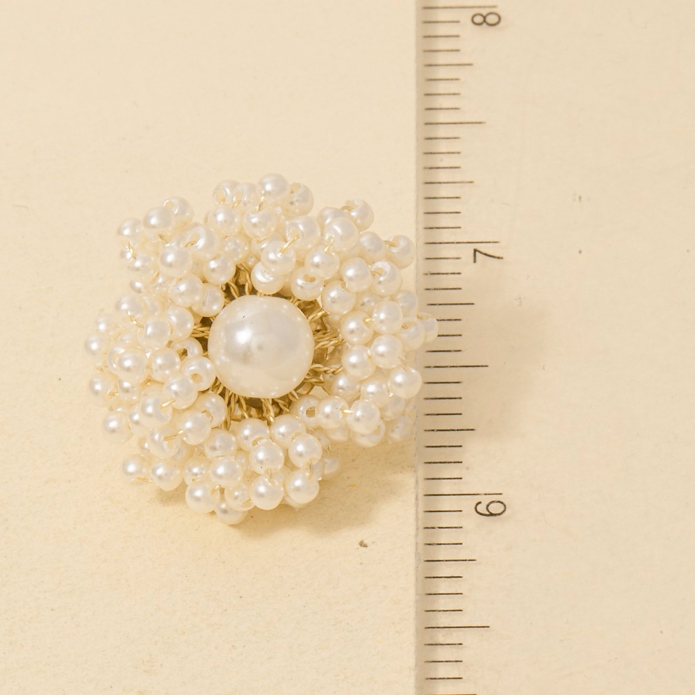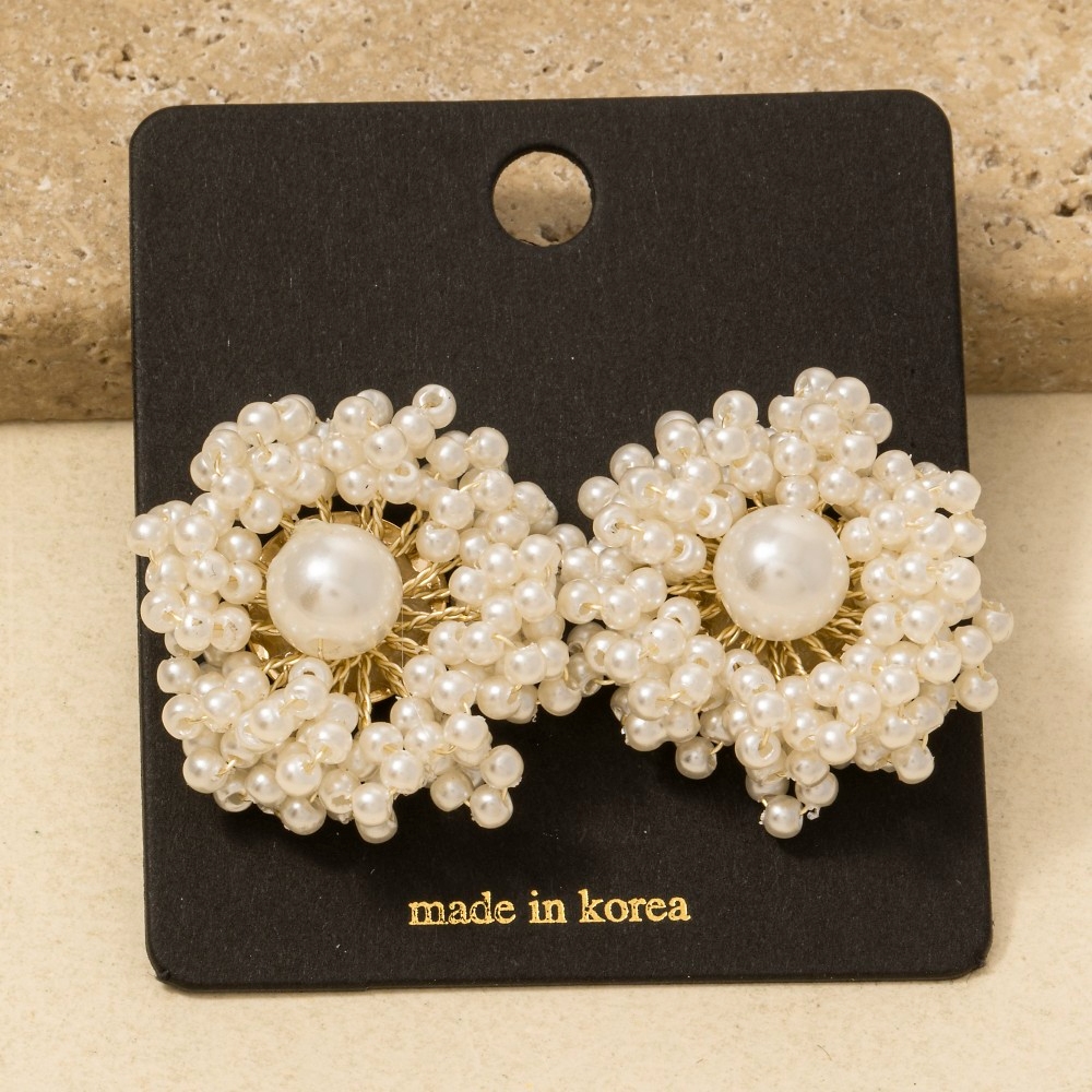 Pearl Metallic Beads And Petals Cluster Dangle Earrings