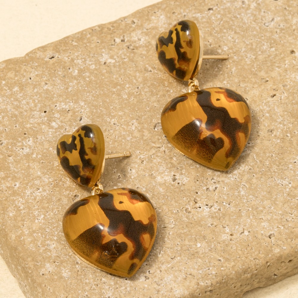 • Make a statement, this pair of dangle earrings evokes a captivating double tortoise shell heart design. Elevate your fashion IQ with this versatile pair of dangle earrings, designed to seamlessly integrate into any style profile. Available in TT2. This item is sold in packs of 1.