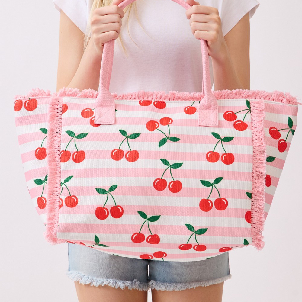 • Perfectly versatile and endlessly stylish, this tote bag features a distinct cherry striped design. The perfect way to elevate any outfit, this tote bag adds a touch of elegance and style. Available in PK. This item is sold in packs of 1.