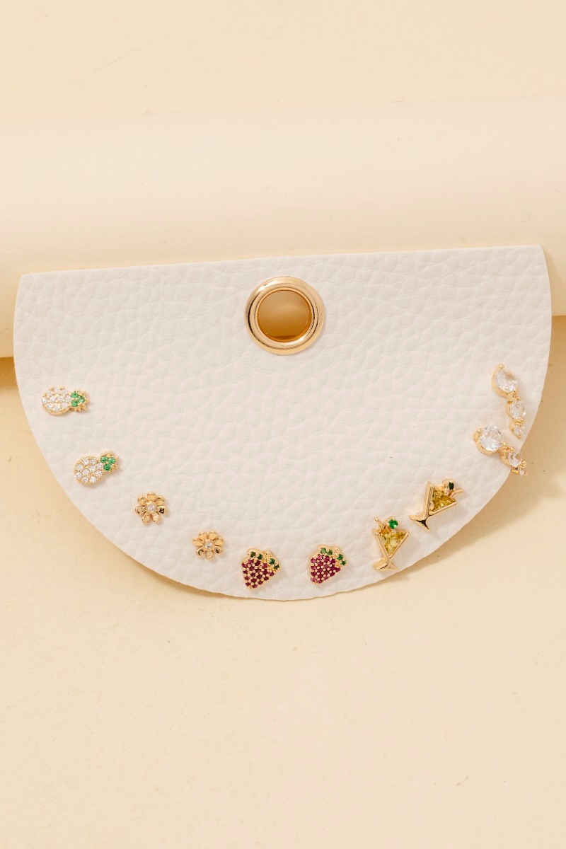 • This pair of stud earrings introduces a stunning 5pc cubic zirconia pave fruits flower and martini set style. Indulge in the allure of exquisite craftsmanship as this pair of stud earrings effortlessly adds a touch of luxury to your attire.