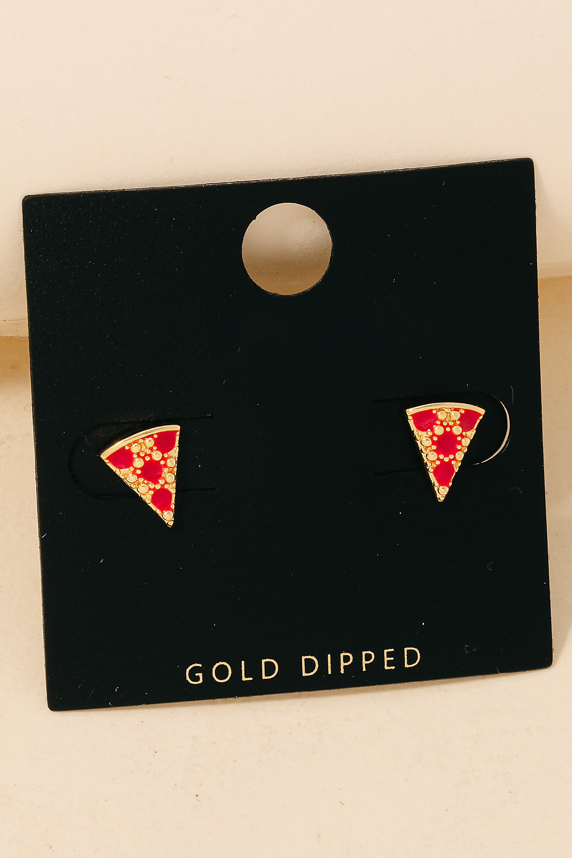 • this pair of columbus jewelry stud earrings adds a modern gold dipped epoxy pizza style. Experience a subtle blend of modernity and classic charm as this pair of columbus jewelry stud earrings effortlessly adorns your ensemble.