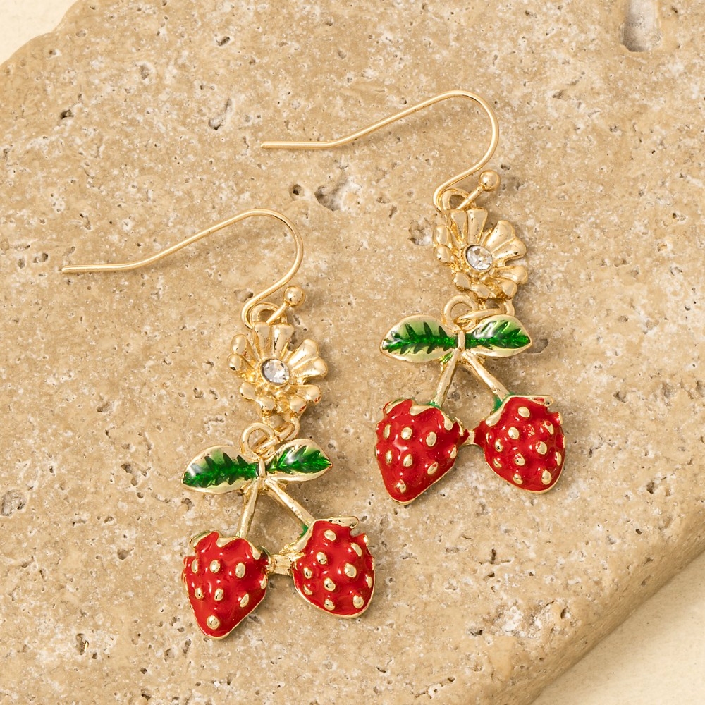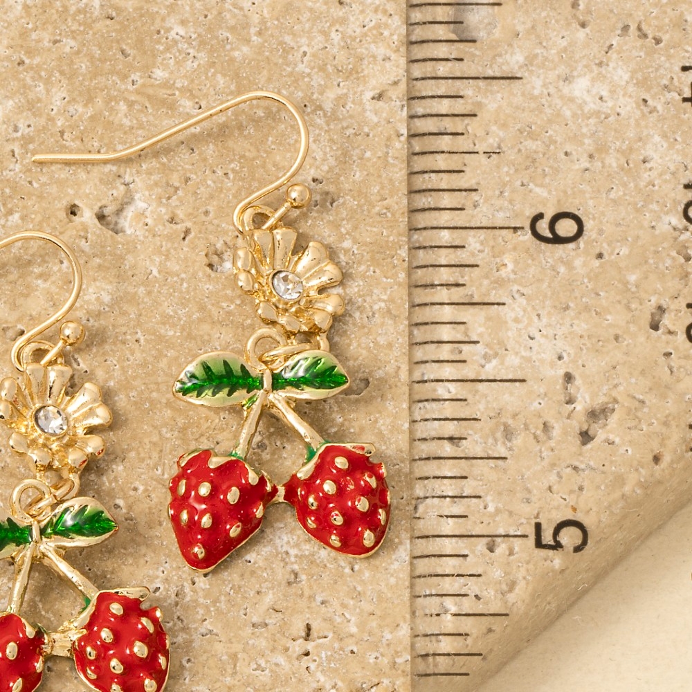 • The perfect way to add some sparkle to your outfit, this pair of dangle earrings encompasses a grand flower and strawberries enamel design. Redefine your wardrobe with this versatile pair of dangle earrings, a timeless addition that brings an air of sophistication to any look. Available in REDGD. This item is sold in packs of 1.
