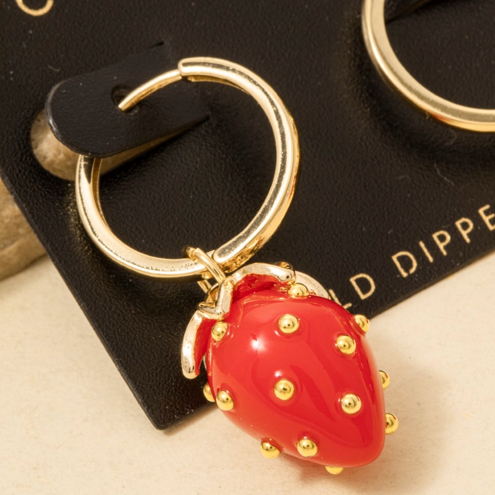 • Add a touch of elegance and glamour to your look, this pair of drop earrings encompasses a grand gold dipped strawberry design. This pair of drop earrings is ideal for both casual and formal events, adding a touch of sophistication to any outfit. Available in GOLD. This item is sold in packs of 1.