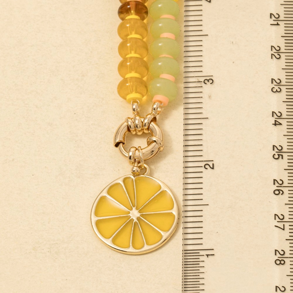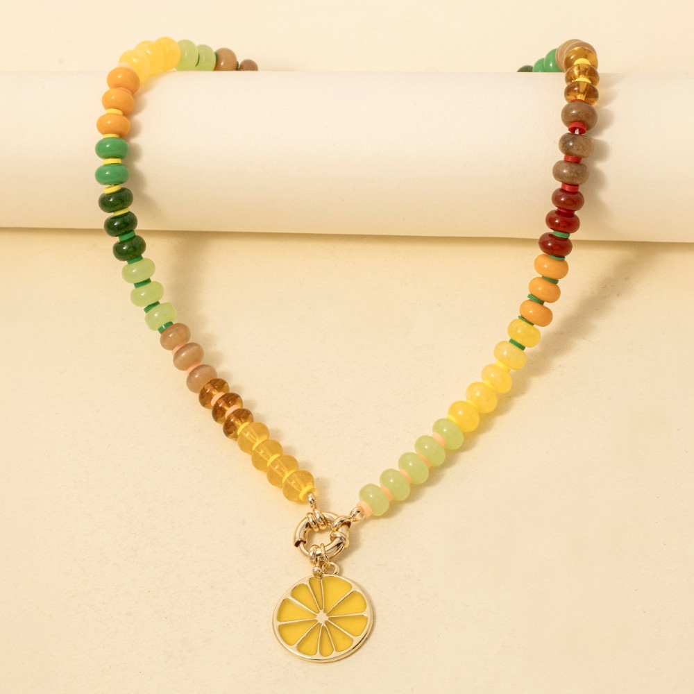 The perfect way to add some edge to your look, this pendant necklace showcases a breathtaking lemon slice pendant mixed beaded necklace design. Elevate your personal style effortlessly with this versatile pendant necklace, an essential component for a refined wardrobe. Available in XMUST. This item is sold in packs of 1.