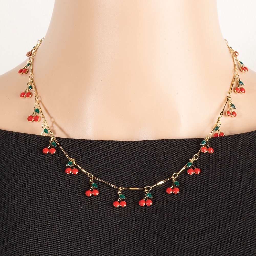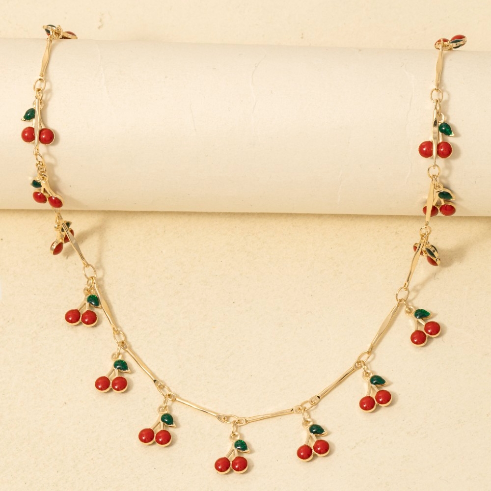 • This piece is both elegant and versatile, this necklace evokes a captivating multi cherry fruit station design. The perfect way to complete any outfit, whether you're dressing up or keeping it casual. Available in G. This item is sold in packs of 1.