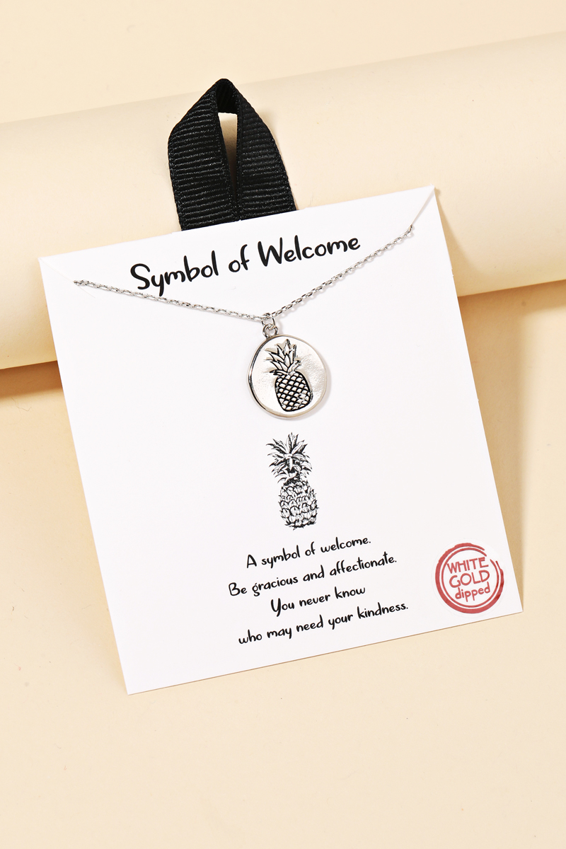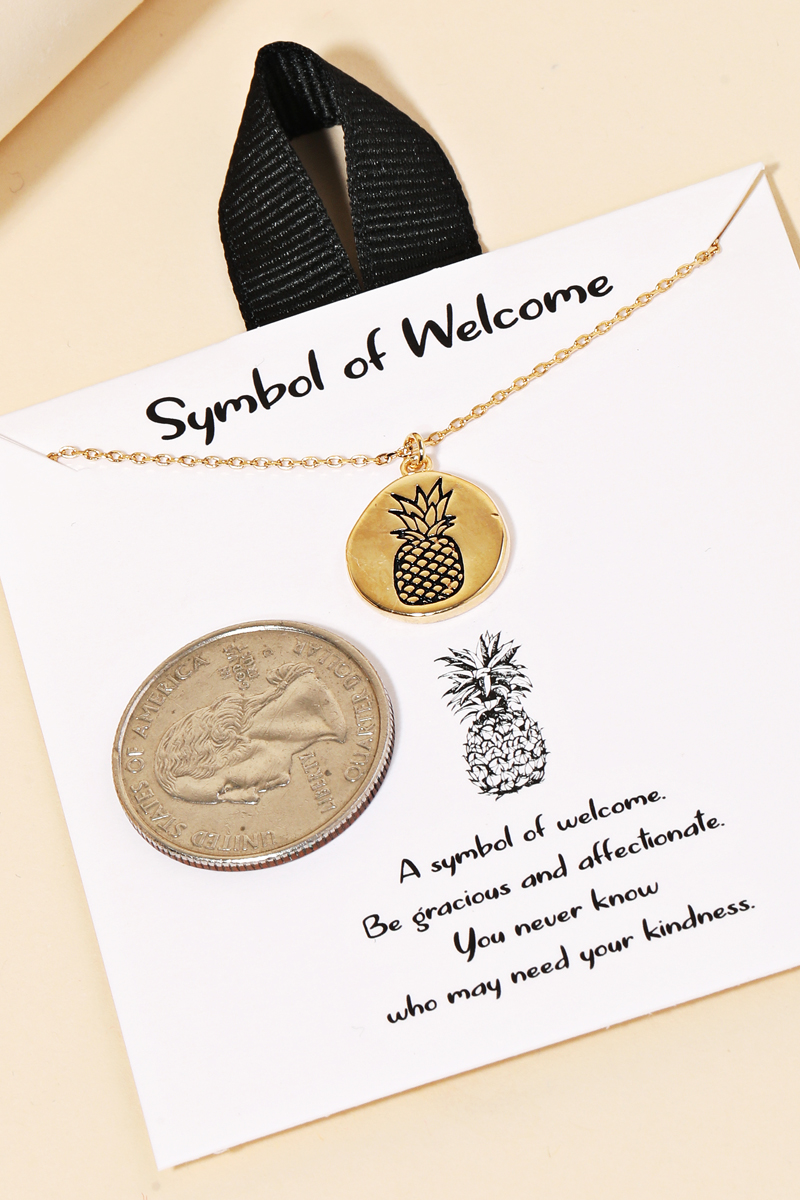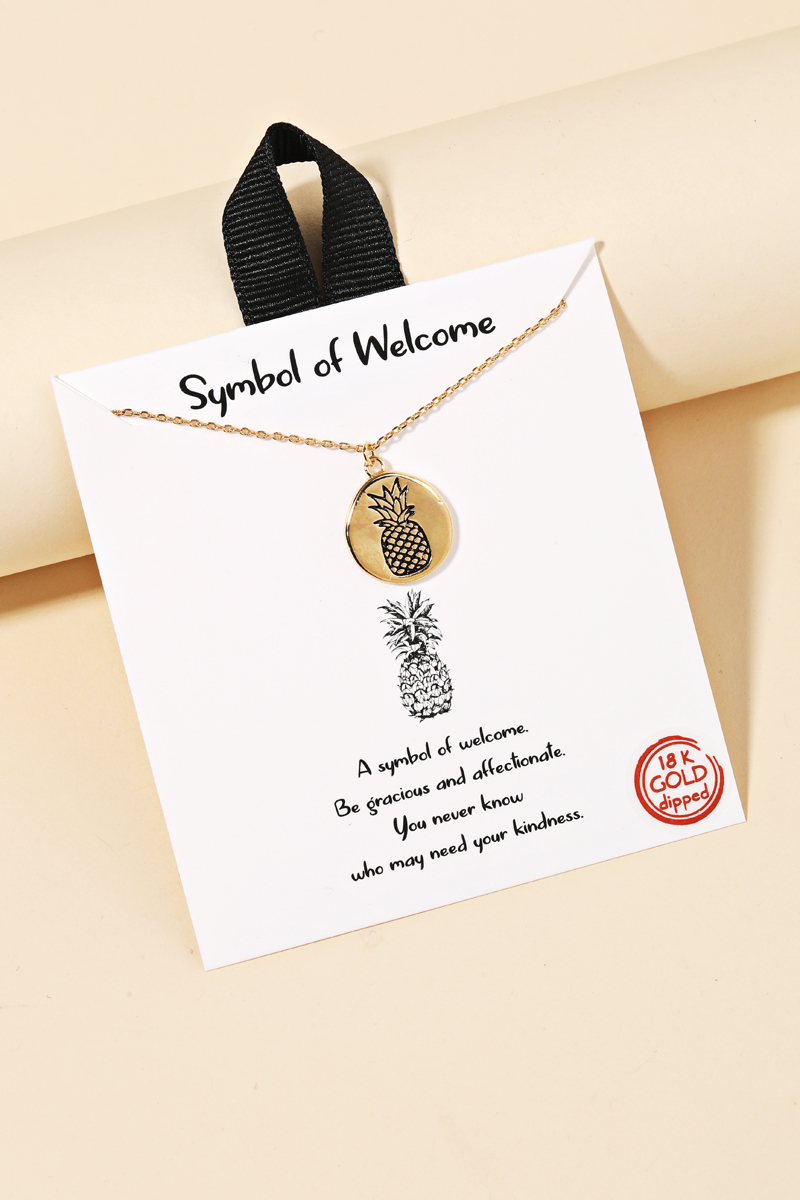 - This is a must have gold dipped necklace that features a gorgeous gold dipped pineapple coin pendant necklace design. An excellent choice for business casual occasions! Available in G and S. Made In Korea.