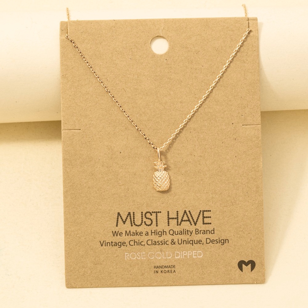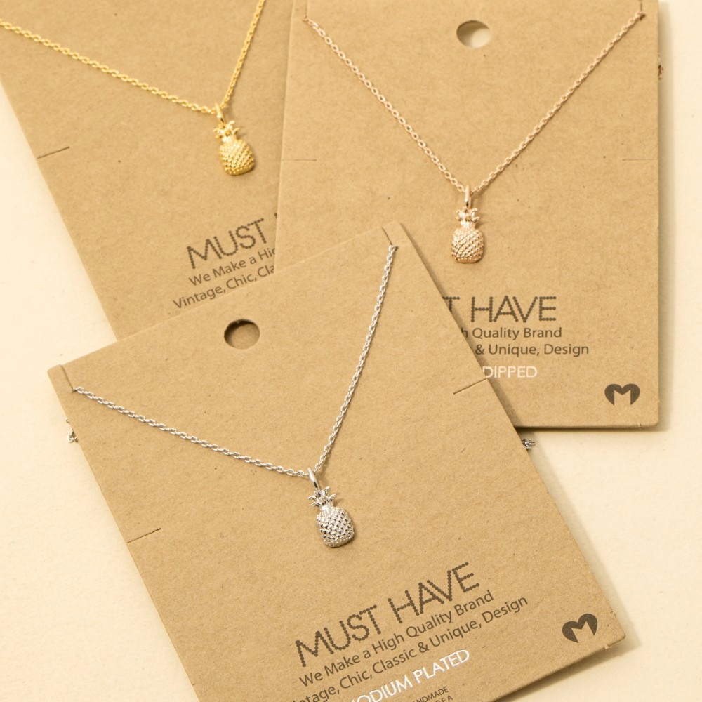 • A stunning addition to any jewelry collection, this trending necklace offers a remarkable gold dipped pineapple pendant necklace design. Elevate your outfit with this stylish trending necklace that's perfect for any occasion. Available in G, R, S. This item is sold in packs of 1.