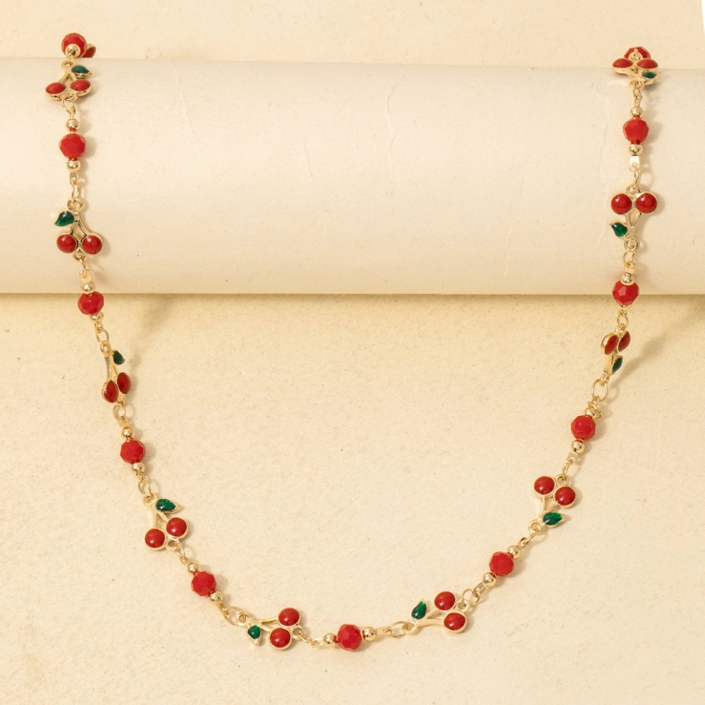• Sleek, modern, and always stylish, this chain necklace boasts a magnificent multi cherry fruit design. A stylish chain necklace that's perfect for complementing any outfit you wear. Available in G. This item is sold in packs of 1.