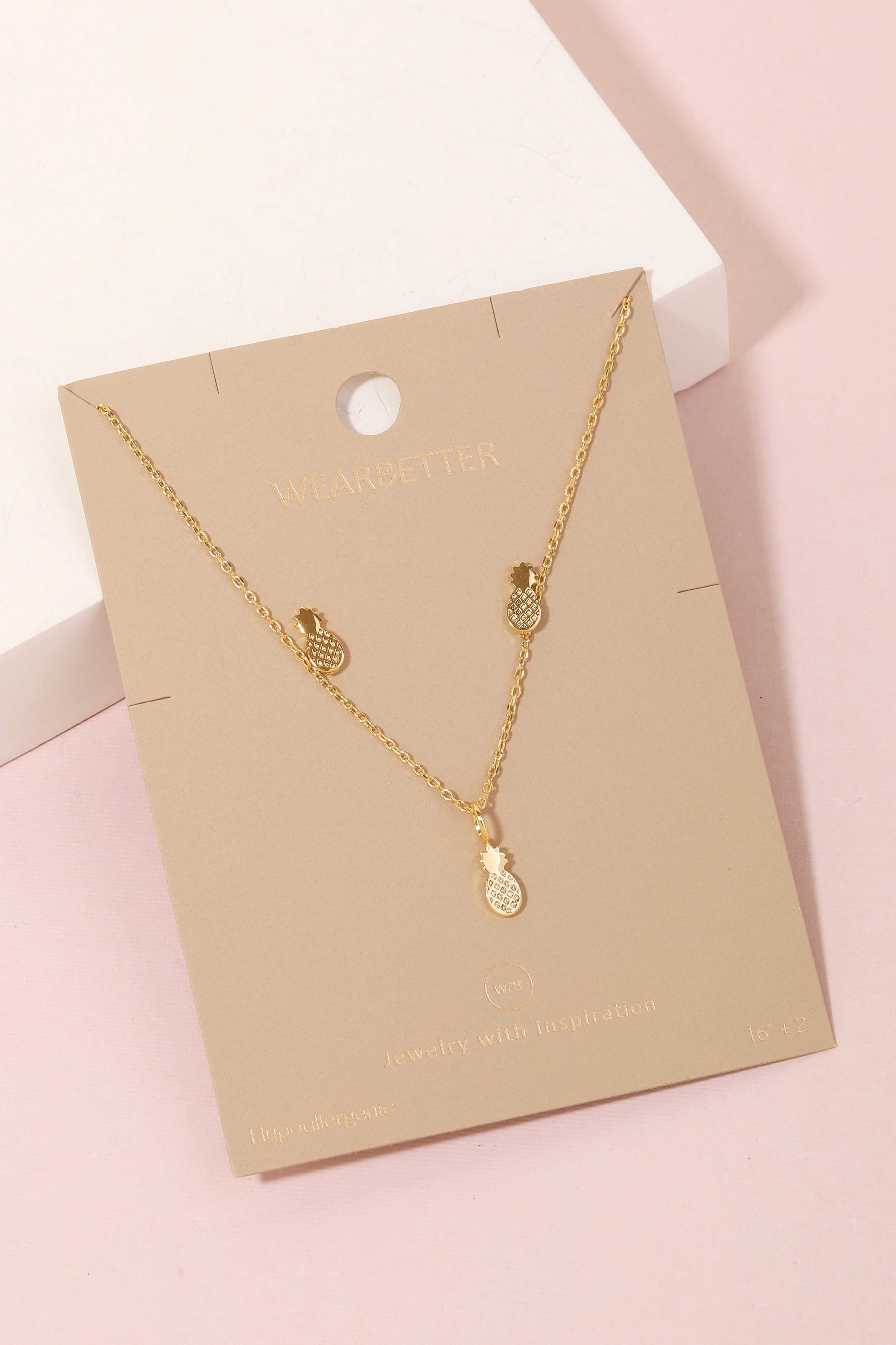• This season's must-have accessory, this pair of stud earrings boasts a magnificent pineapple stud earrings and pendant necklace set design. Perfect for adding some texture and dimension to any outfit, this accessory is a must-have. Available in G. This item is sold in packs of 1.