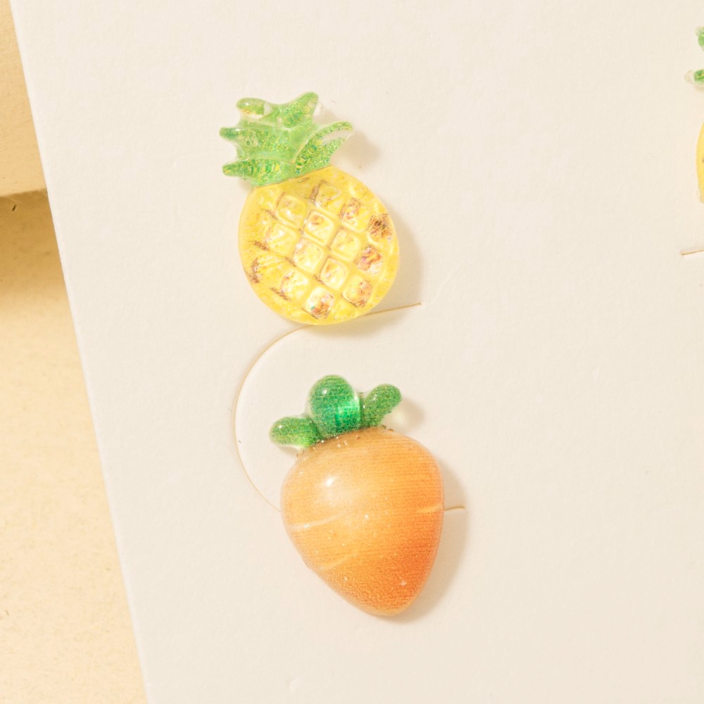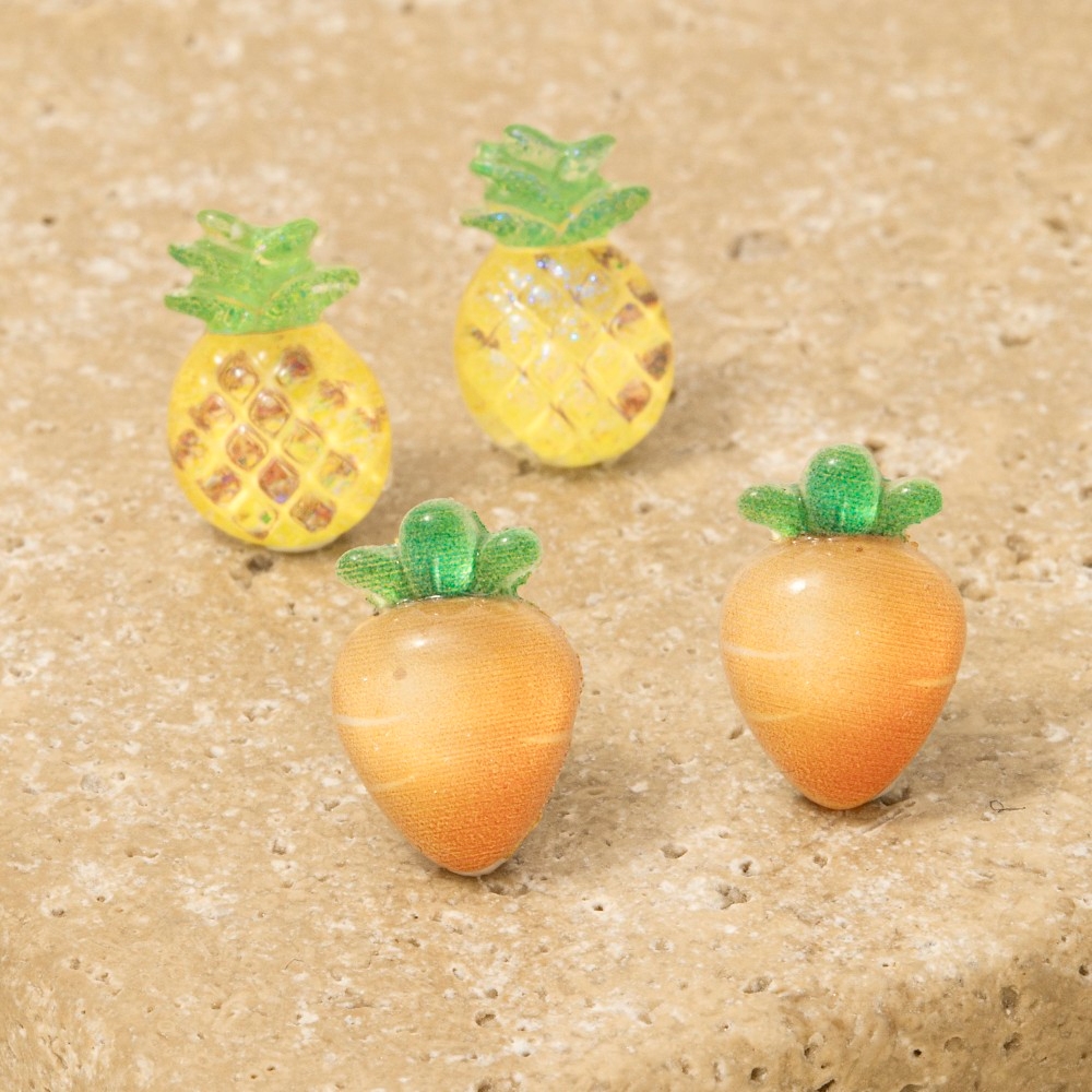 • This piece is both elegant and versatile, this pair of stud earrings embodies a sophisticated pineapple and carrot acrylic set design. Unlock endless styling possibilities with this versatile pair of stud earrings, creating a signature look that speaks volumes. This item is sold in packs of 1.