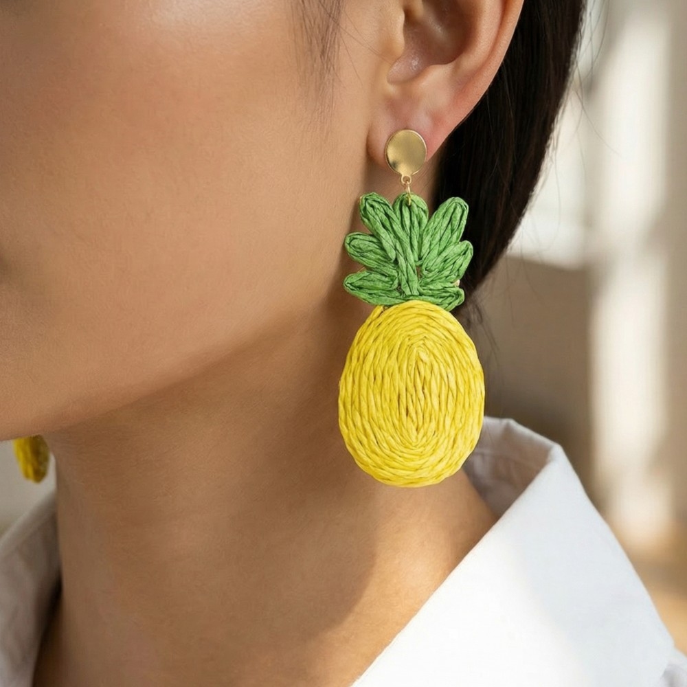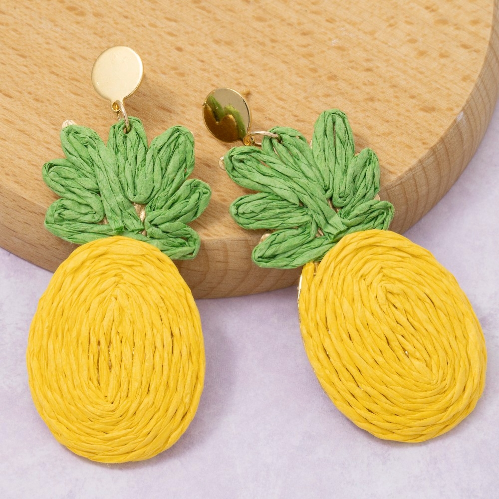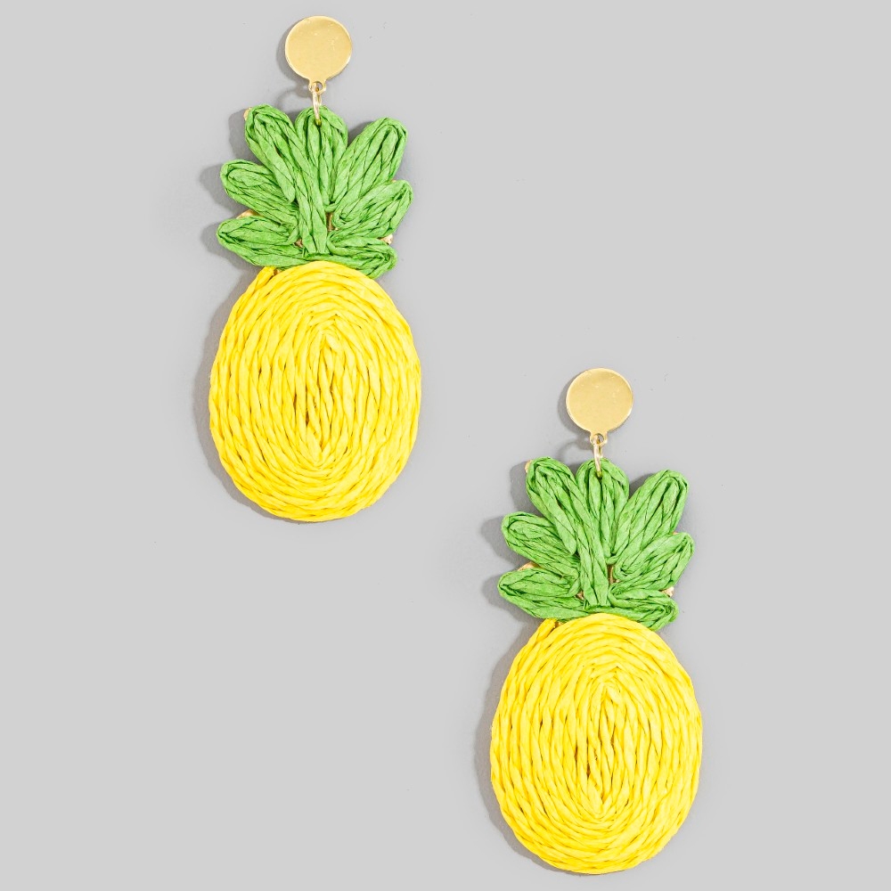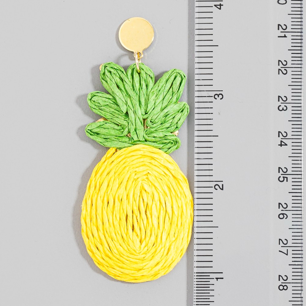 A versatile piece that can be dressed up or down, this pair of dangle earrings incorporates a remarkable raffia wrap pineapple stud design. Add some personality to your outfit with this stylish pair of dangle earrings. Available in YL. This item is sold in packs of 1.