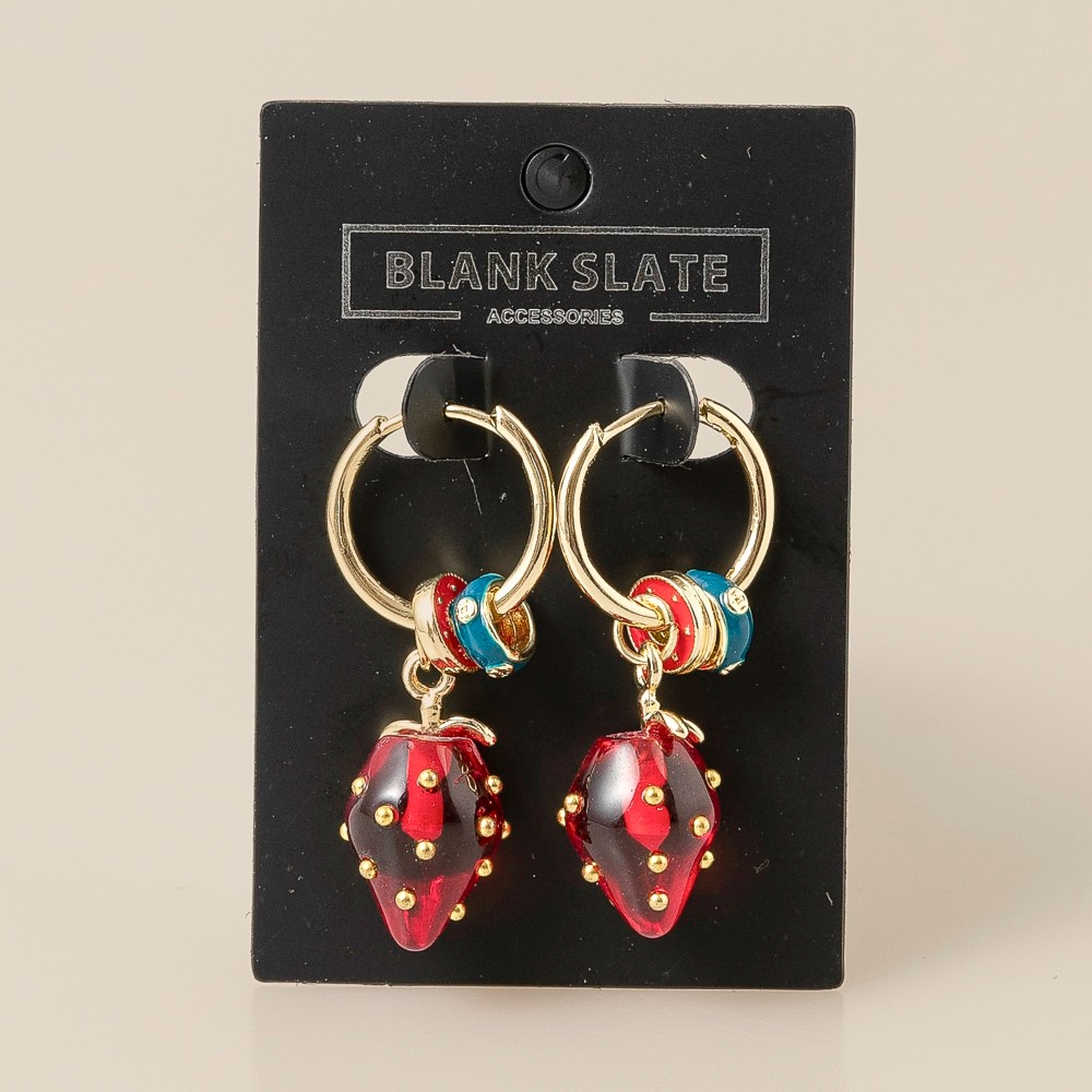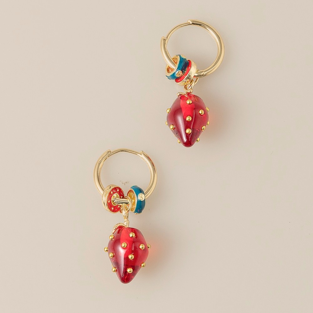 • An instant wardrobe staple, this pair of hoop earrings exudes a refined strawberry and ring charms design. Elevate your fashion game with this versatile pair of hoop earrings, seamlessly integrating into your signature style. Available in GOLD.
