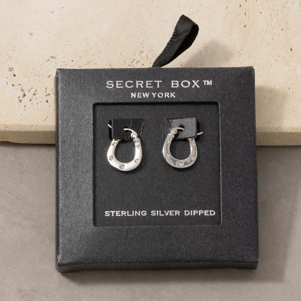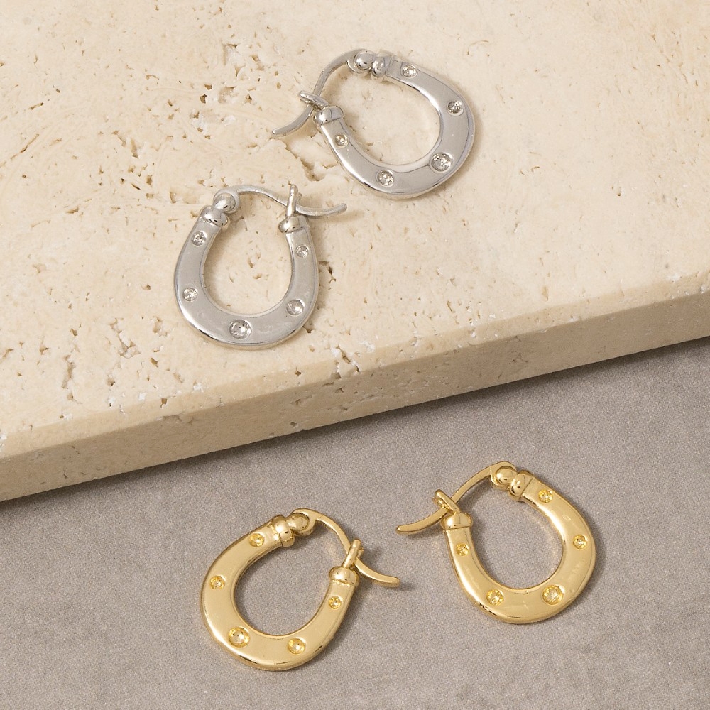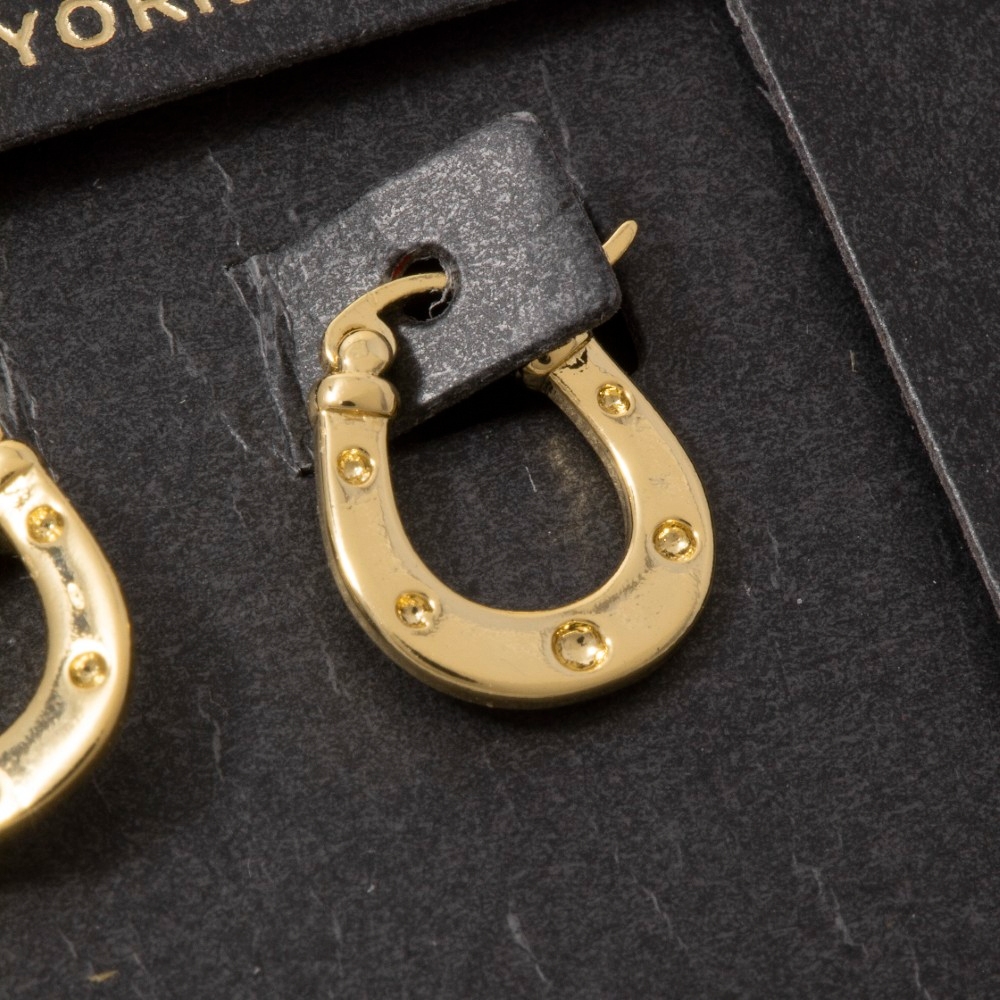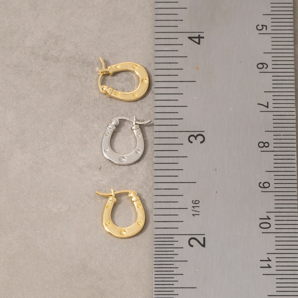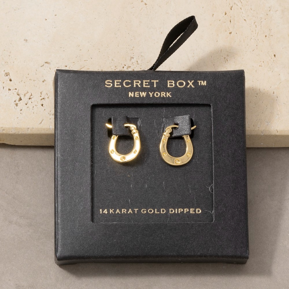 Make a statement, this pair of hoop earrings adds a distinctive 14k gold dipped cubic zirconia horseshoe design. Infuse elegance into your daily wardrobe with the versatile charm of this must-have pair of hoop earrings. Available in GD, WG. This item is sold in packs of 1.
