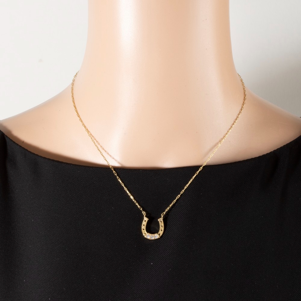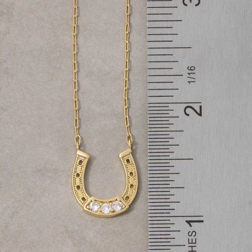 Gold Dipped Horse Shoe And Cz Charm Necklace