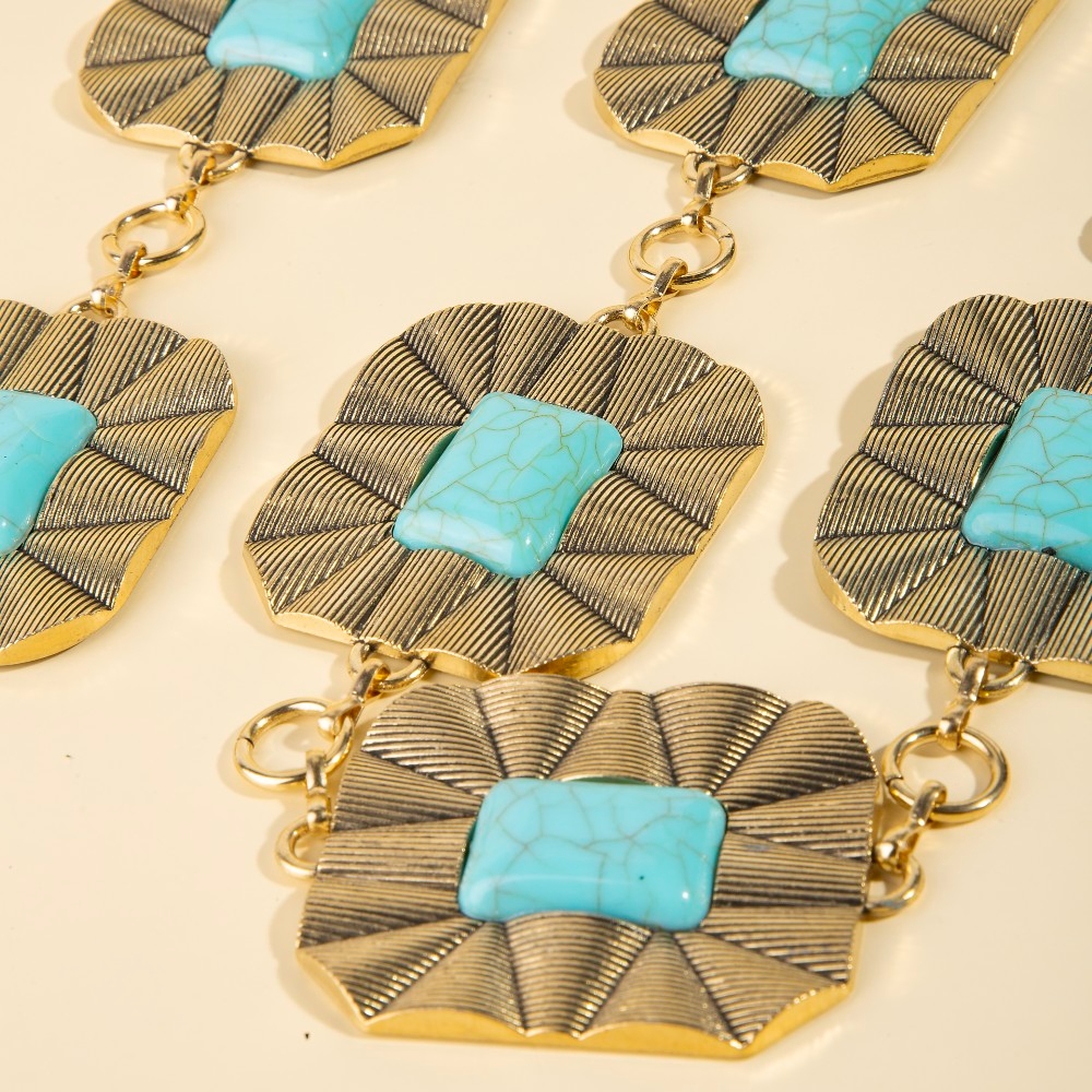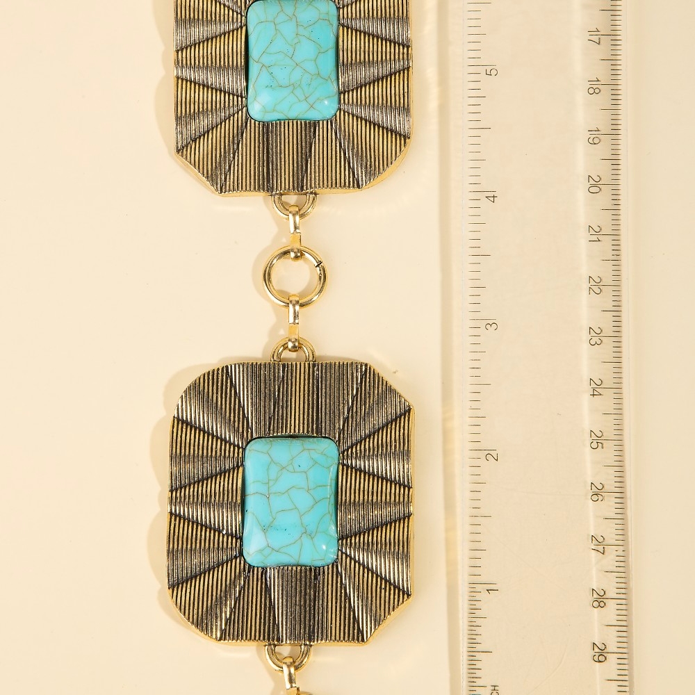 • A stunning addition to any jewelry collection, this chain belt features an exceptional large rectangle stone concho waist design. Unleash the charm of this versatile chain belt, effortlessly turning any outfit into a fashion statement. Available in G, S. This item is sold in packs of 1.