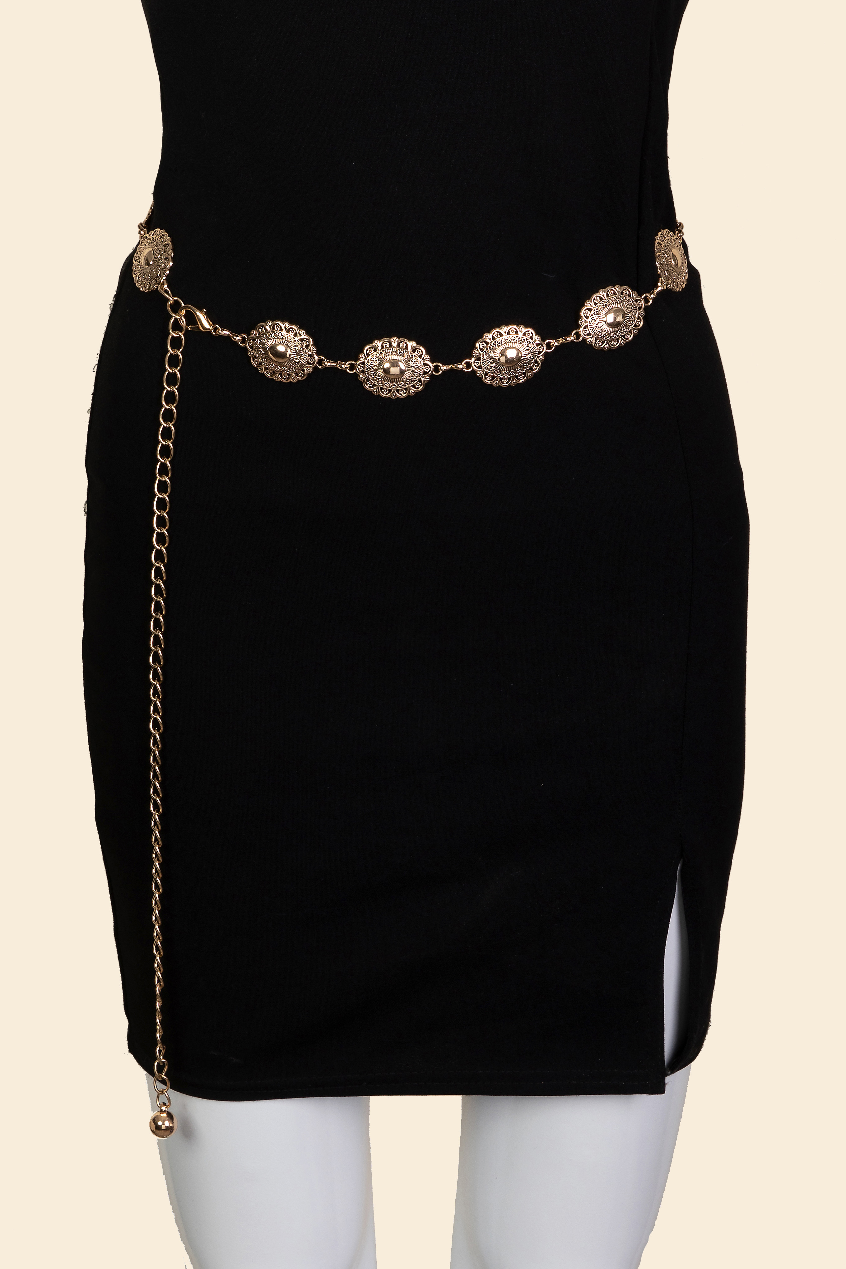 • The epitome of sophistication and style, this chain belt evokes a captivating ornate oval disc design. This item is the perfect way to add some texture and interest to any outfit. Available in G, S. This item is sold in packs of 12.