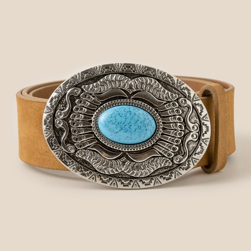 Oval Stone Western Concho Chain Belt