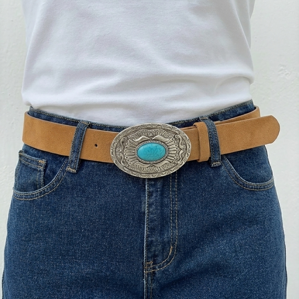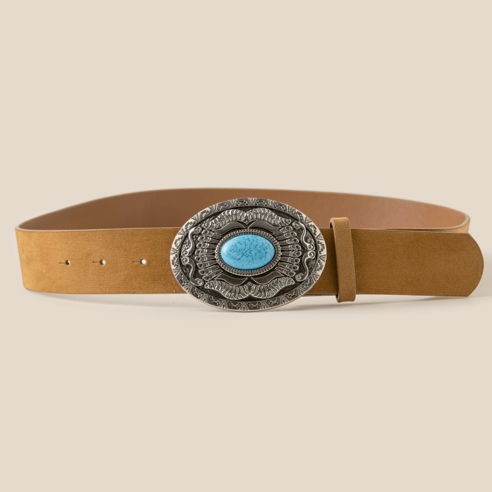 Western Oval Concho Vegan Leather Belt