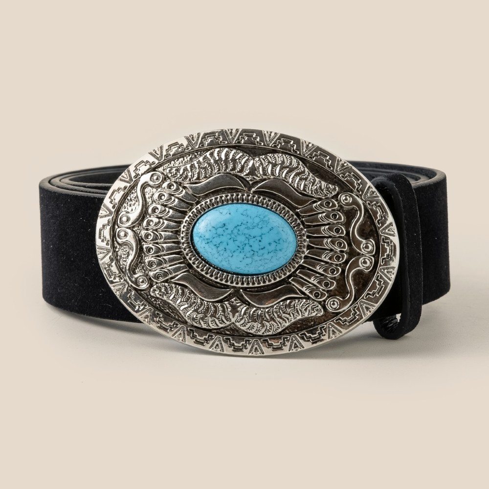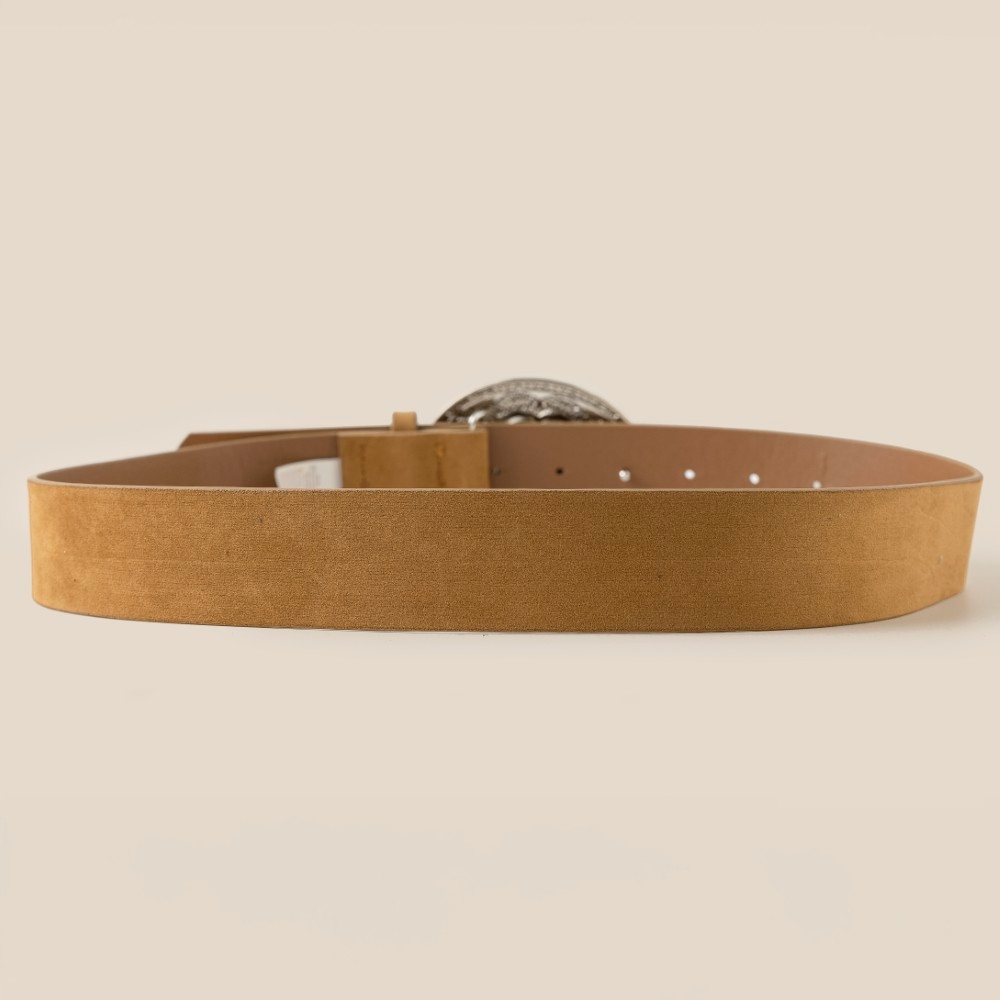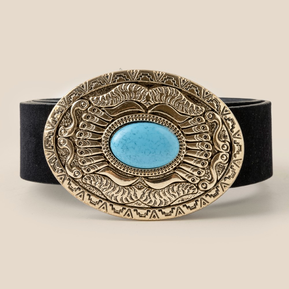 • This piece is designed to make a statement, this belt comes with a special oval western concho oversized buckle design. Elevate your personal style effortlessly with this versatile belt, an essential component for a refined wardrobe. Available in GBK, SBK, SBR. This item is sold in packs of 1.