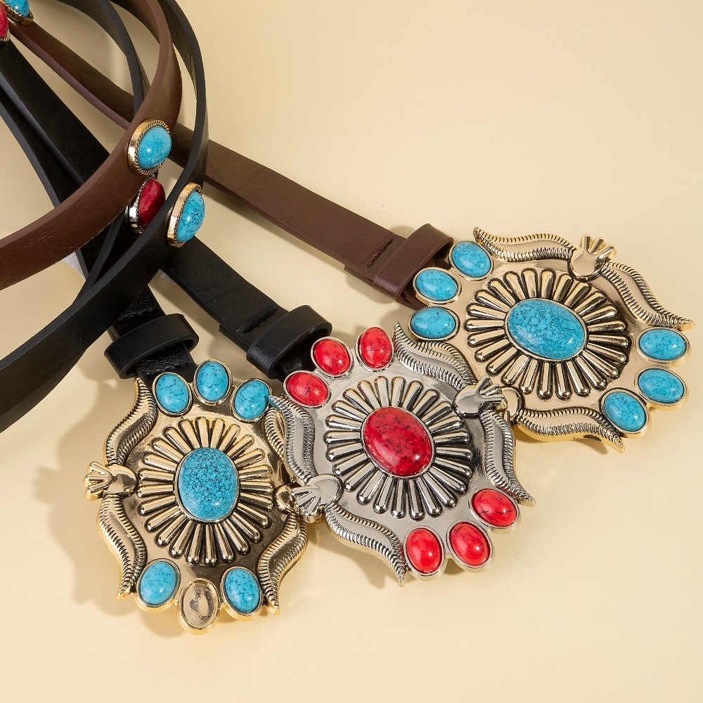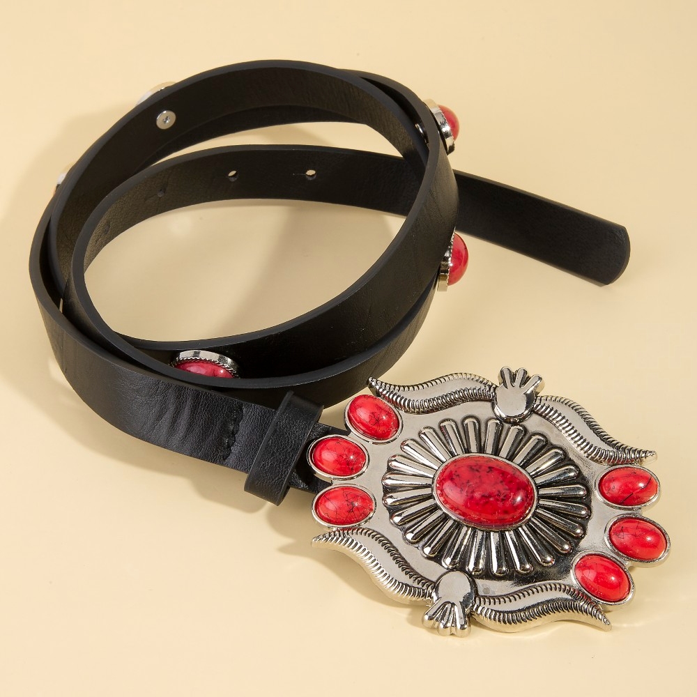 • Chic, sophisticated, and always in style, this leather belt adds a distinctive western concho buckle design. Perfect for dressing up your favorite outfit, this leather belt is a must-have. Available in GBKBL, GCOBL, SBKRD. This item is sold in packs of 1.