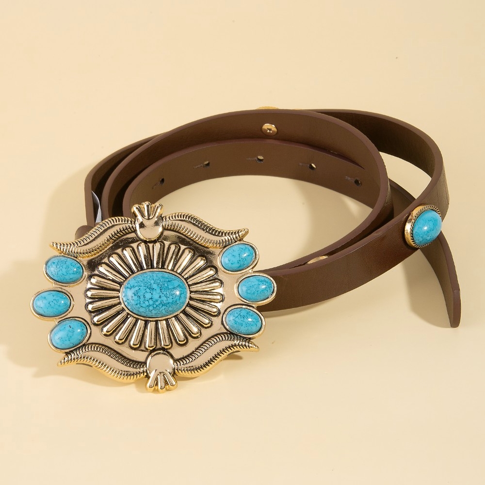 Western Grommet Oval Longhorn Buckle Vegan Leather Belt