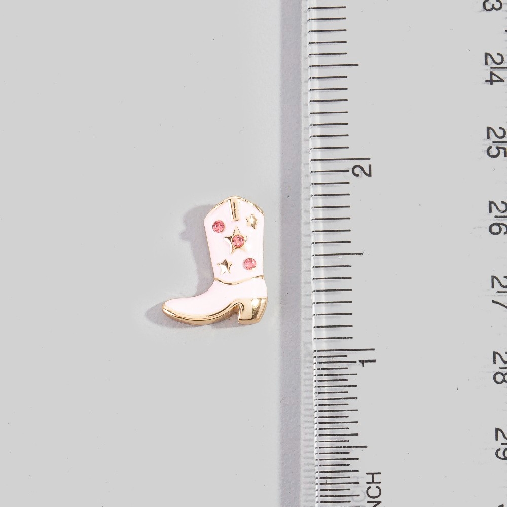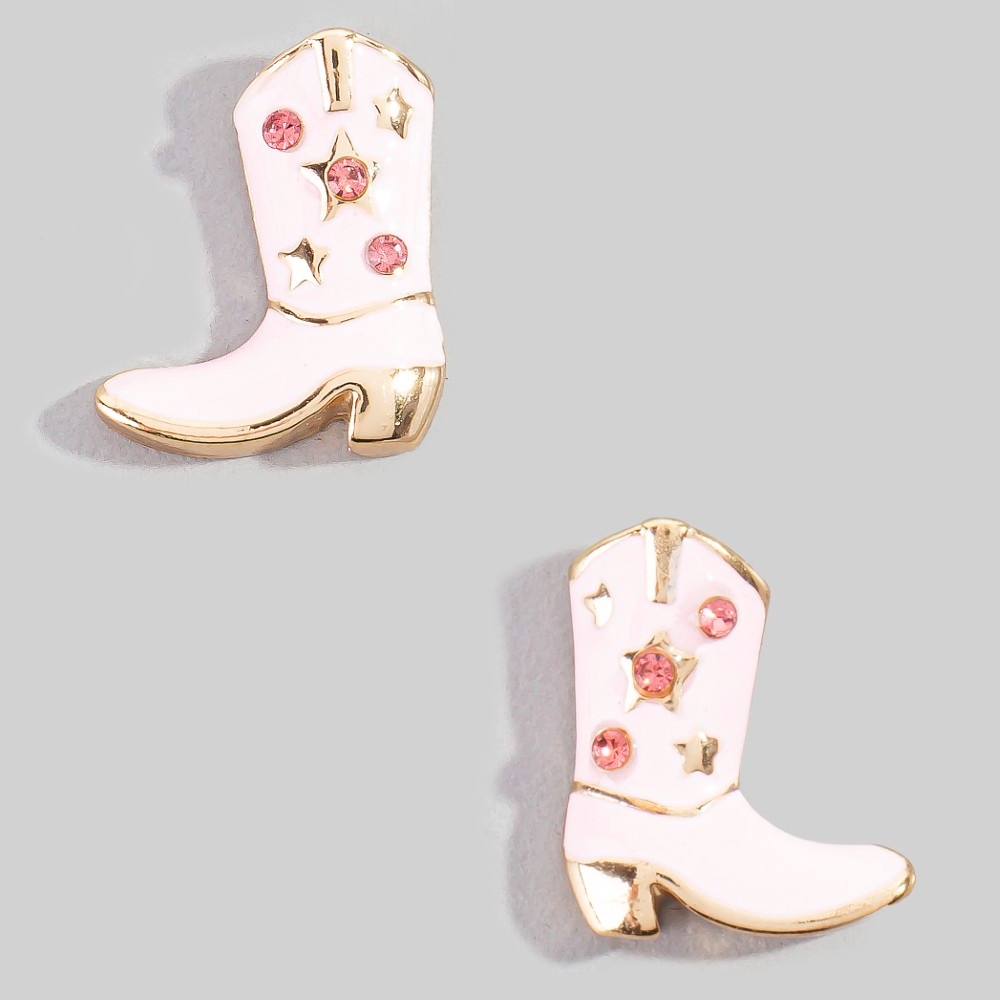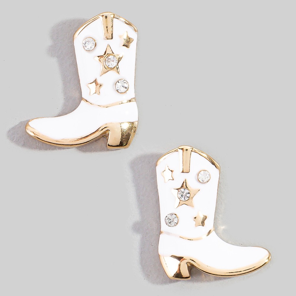 • Effortlessly chic and sophisticated, this pair of stud earrings encompasses a grand enamel and studded cowboy boots design. This item adds the perfect finishing touch to any outfit, making it stand out from the crowd. Available in PKG, USAG, WHG. This item is sold in packs of 1.