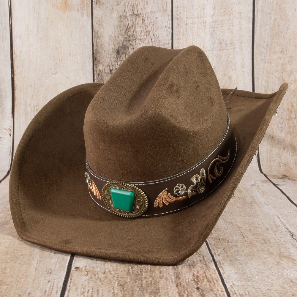 • Elevate your style with something unique and daring, this cowboy hat incorporates a flawless embroidered strap with stone western design. Perfect for adding some personality and flair to your wardrobe, this cowboy hat is a must-have. This item is sold in packs of 12.