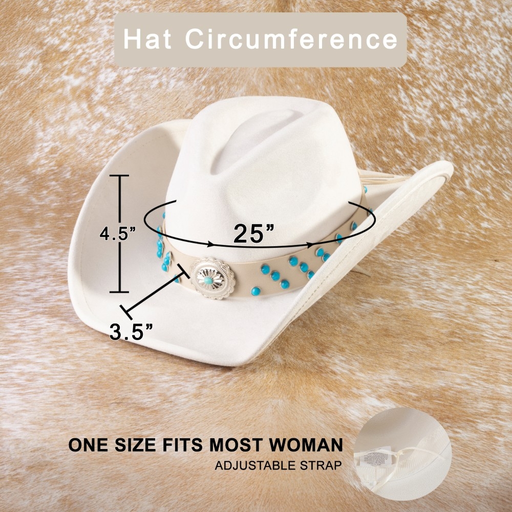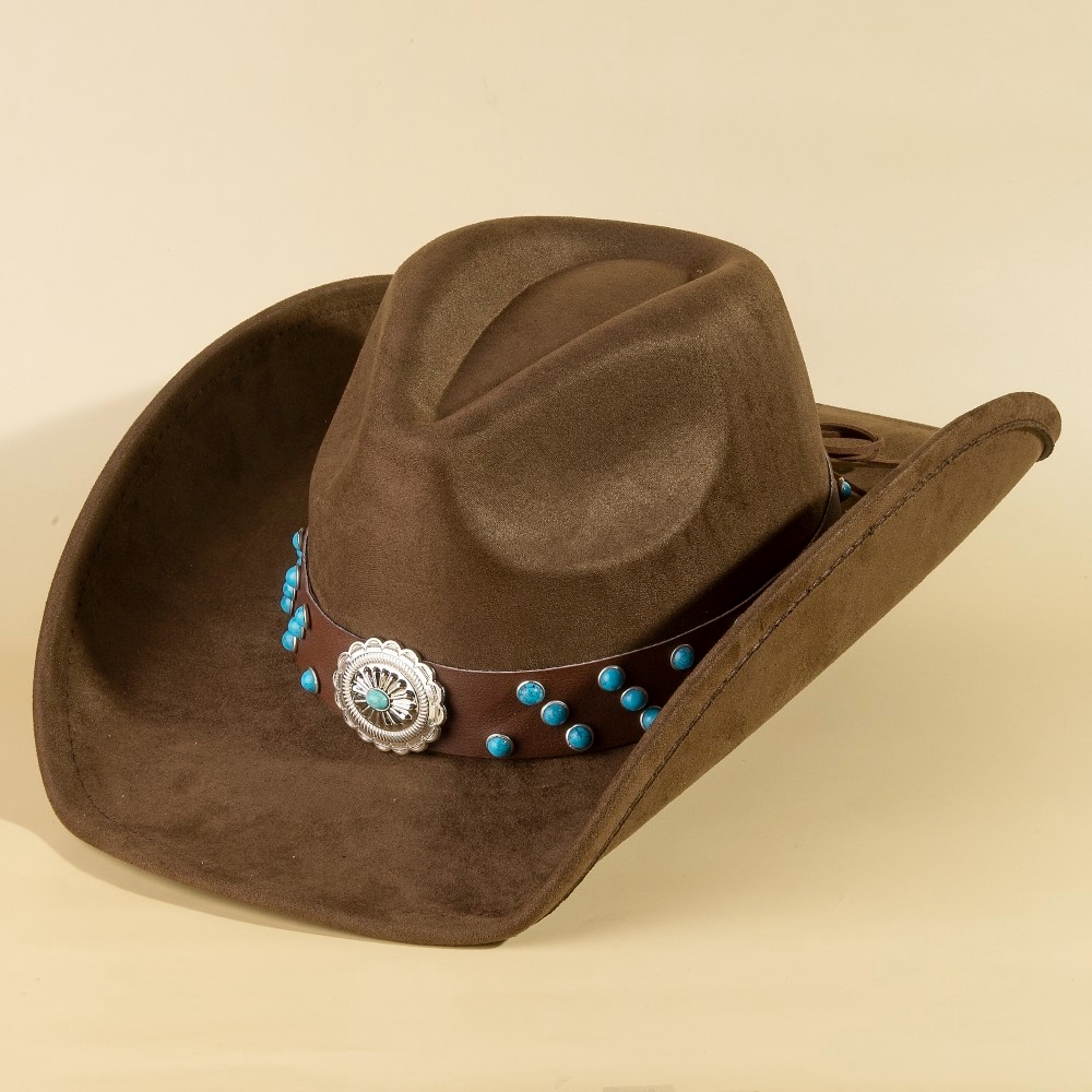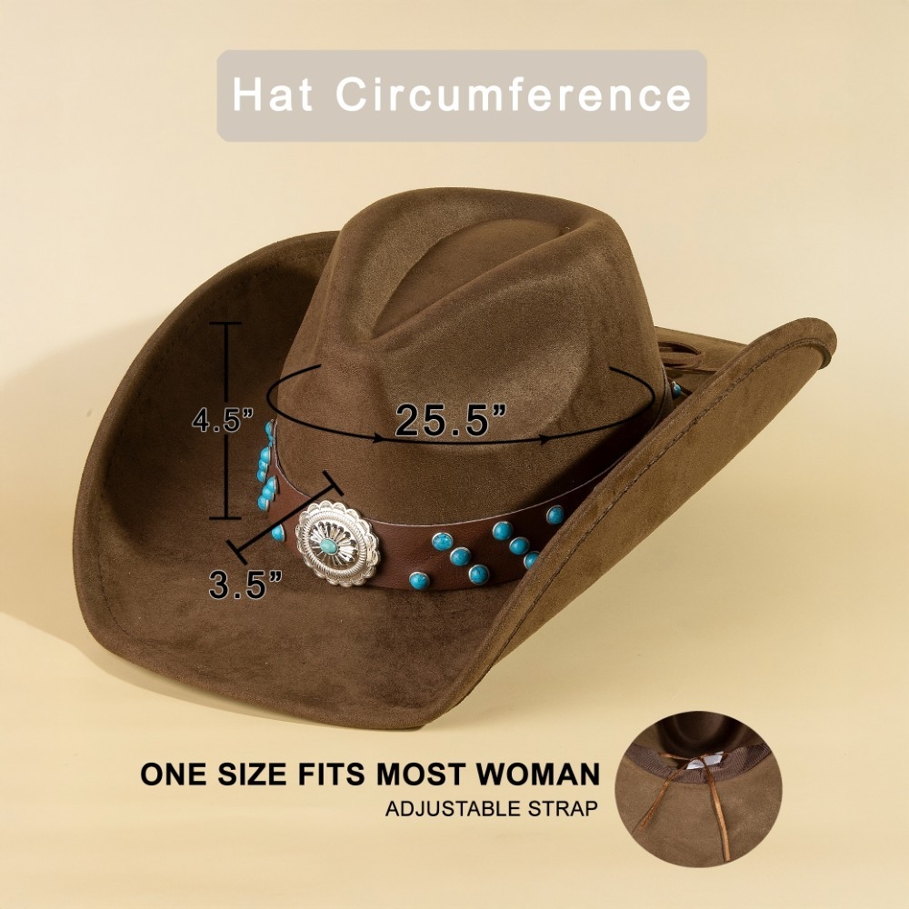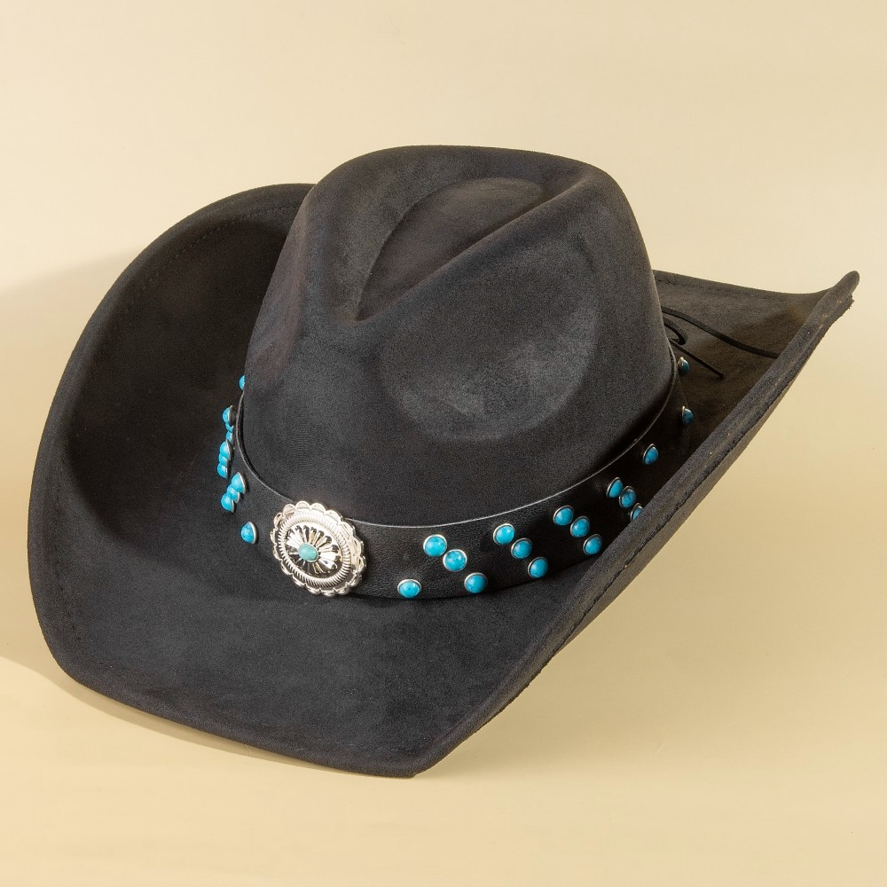 • A must-have addition to any cowboy hat collection, this cowboy hat features a distinct western concho turquoise beads strap design. Make a lasting impression with this versatile cowboy hat, a subtle yet impactful addition to your fashion repertoire. Available in BK, DBR. This item is sold in packs of 1.