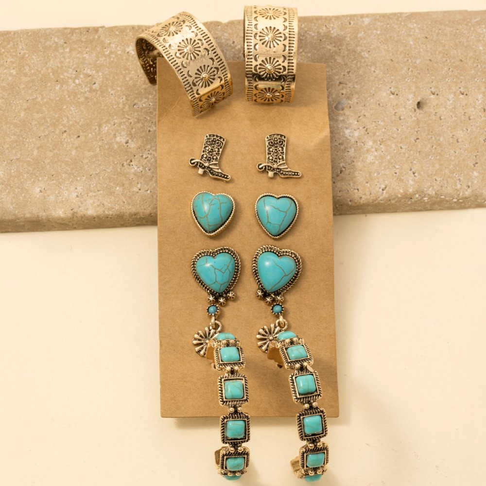 Mixed Western Cowboy Themed Stud Earrings Set