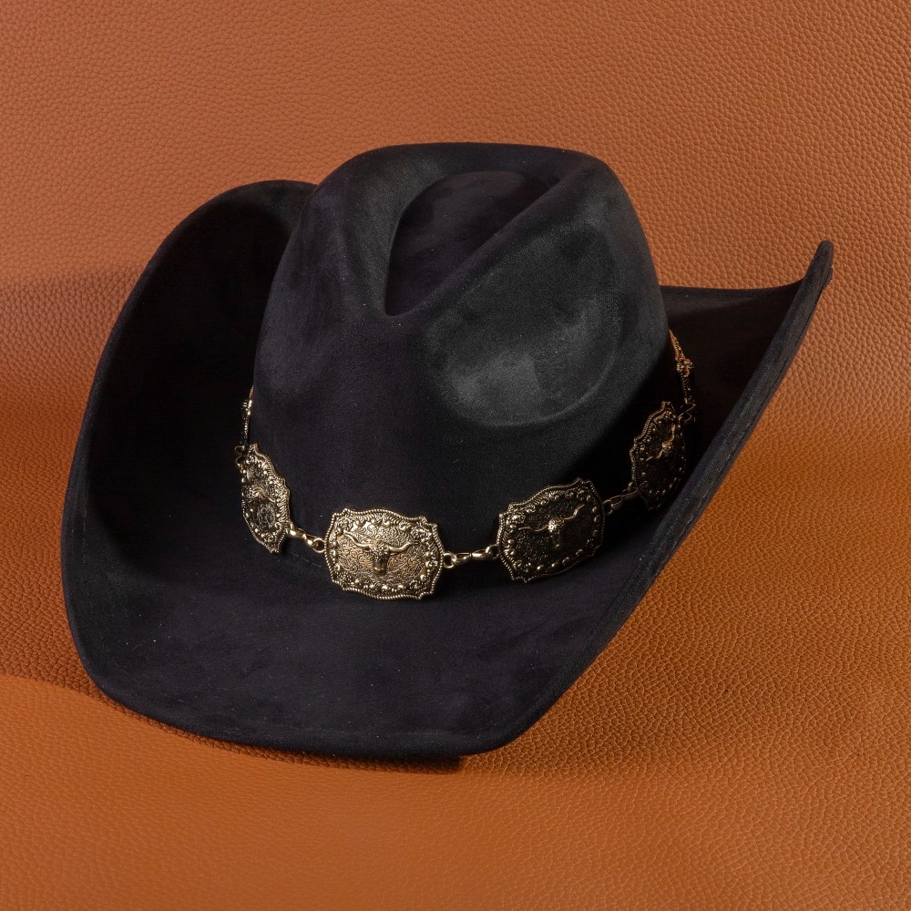 • The perfect way to add some sparkle to your outfit, this cowboy hat possesses a fine longhorn concho chain western design. A chic and sophisticated cowboy hat that's perfect for dressing up or down. This item is sold in packs of 1.