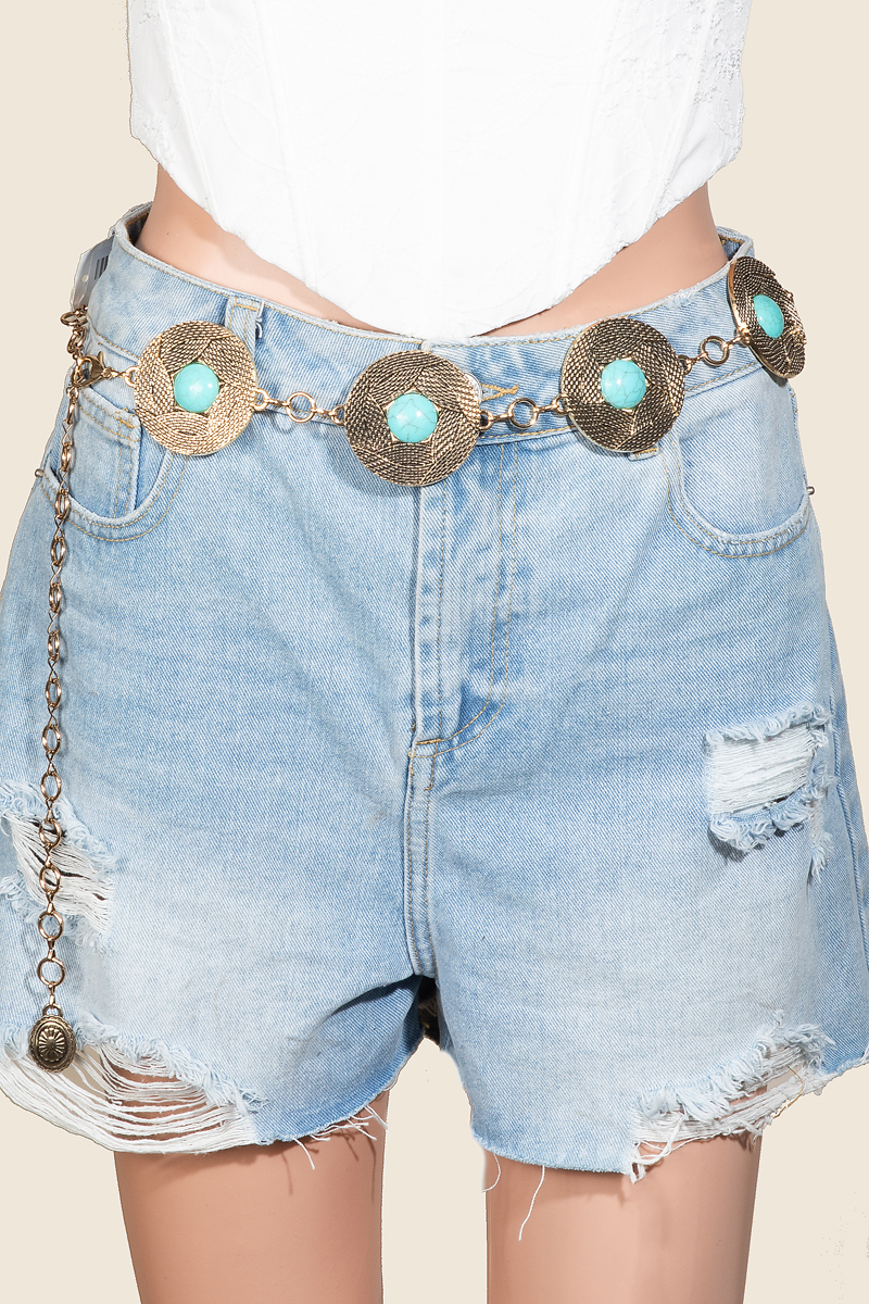 • A classic design with a modern twist, this chain belt possesses a fine textured disc concho design. Infuse elegance into your daily wardrobe with the versatile charm of this must-have chain belt. Available in S and G. This item is sold in packs of 1.