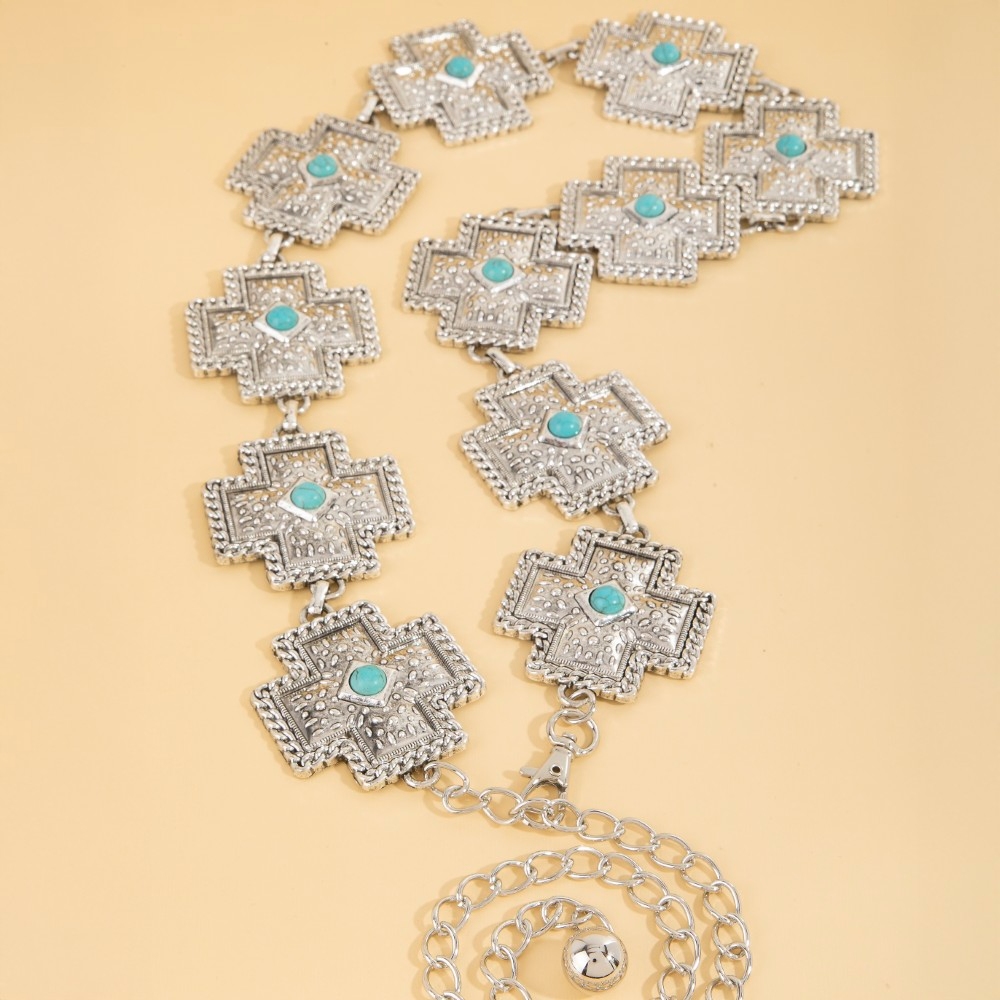 • Unleash your inner fashionista, this chain belt incorporates a remarkable bulky cross design. A must-have chain belt for anyone who loves to add some flair to their outfits. Available in G and S. This item is sold in packs of 1.