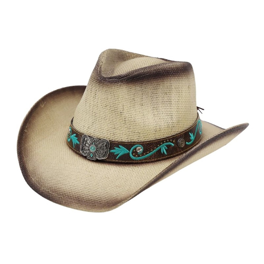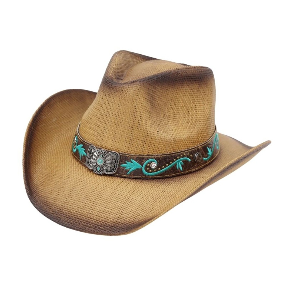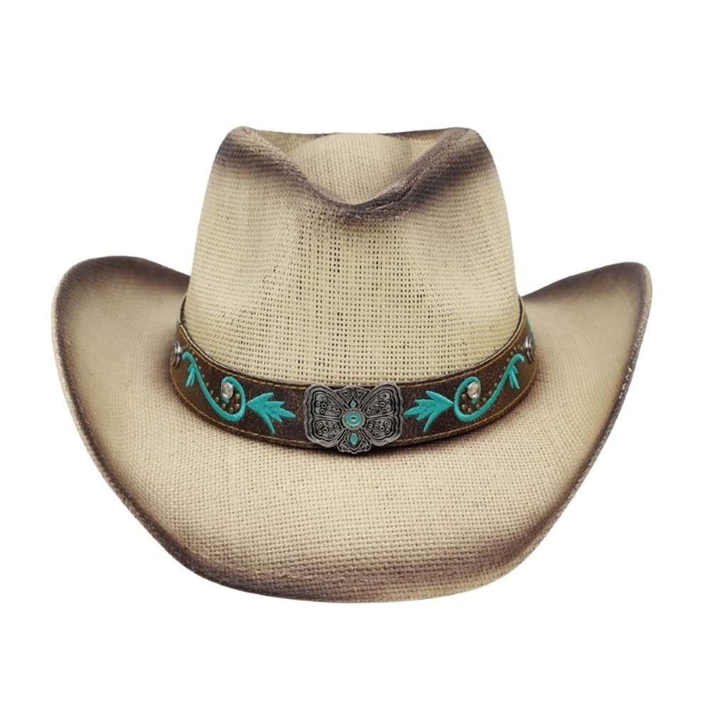 This piece is the perfect way to add some glamour to your look, this cowboy hat includes a stunning western concho strap straw design. A stylish cowboy hat that's perfect for complementing any outfit you wear. Available in BE, TP. This item is sold in packs of 1.