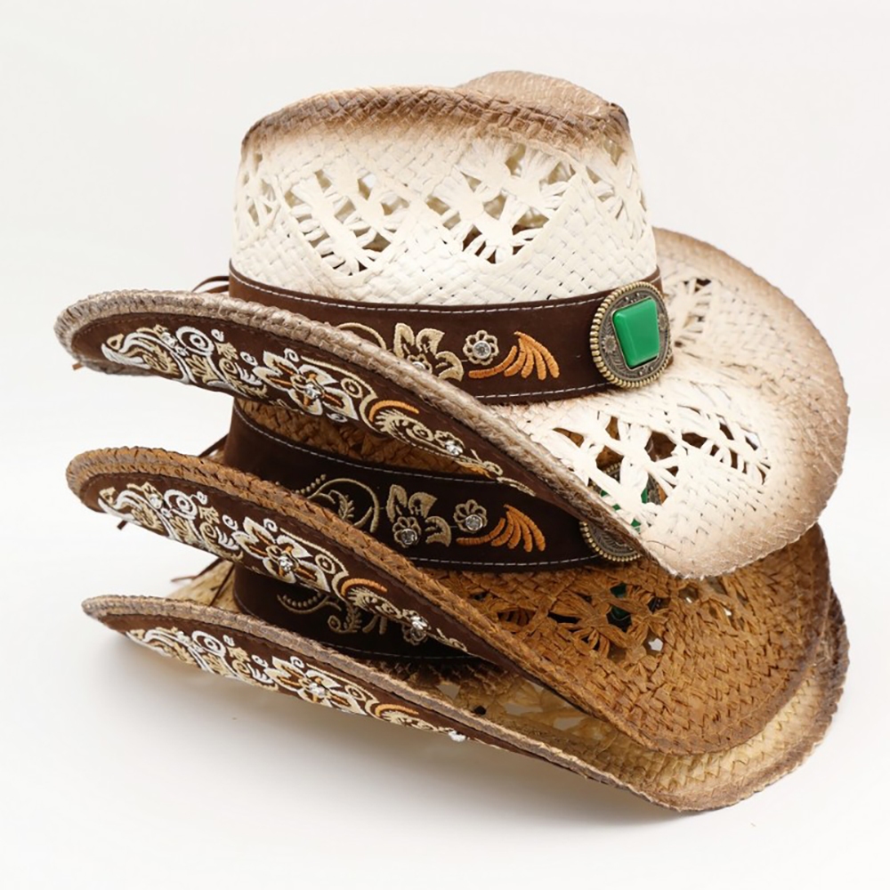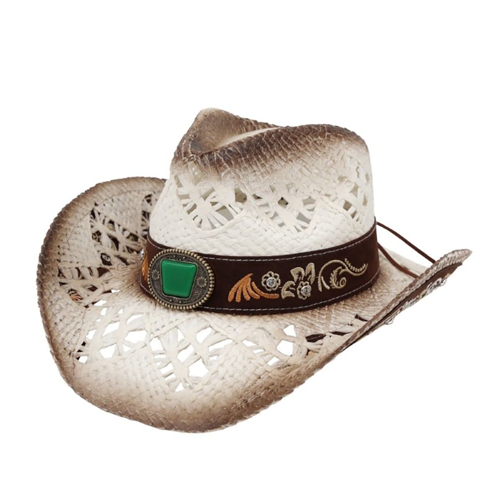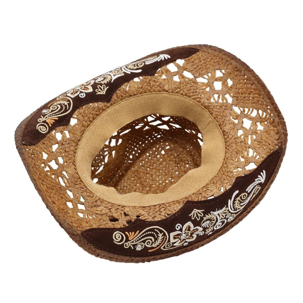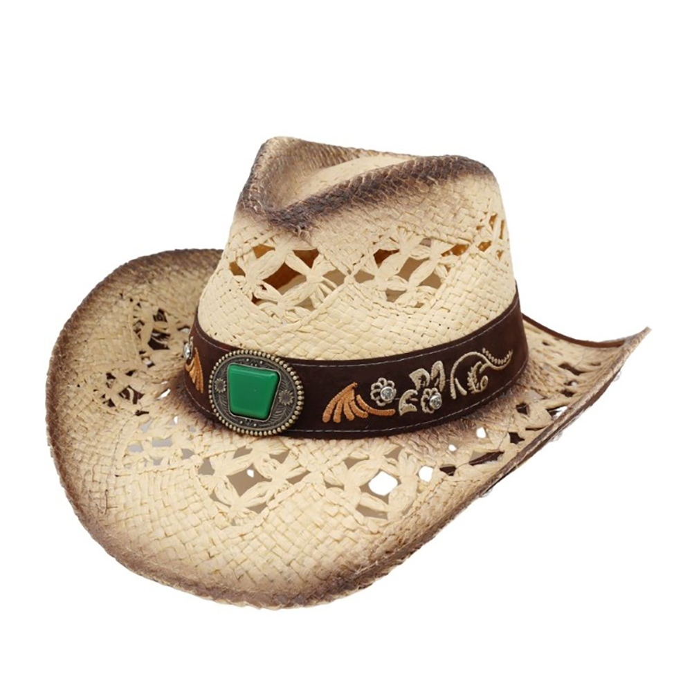 • Make a statement, this cowboy hat exudes a refined western theme embroidered strap straw design. This item is ideal for those who want to add some personality to their wardrobe without being too bold. Available in BE, IV, TP. This item is sold in packs of 1.