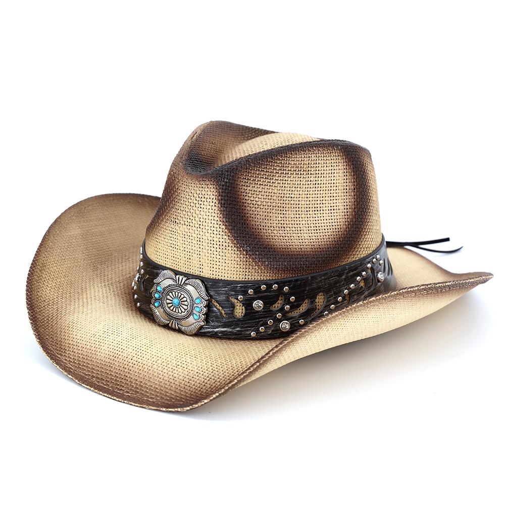 Sunburst Shield Concho Band Straw Cowboy Hat