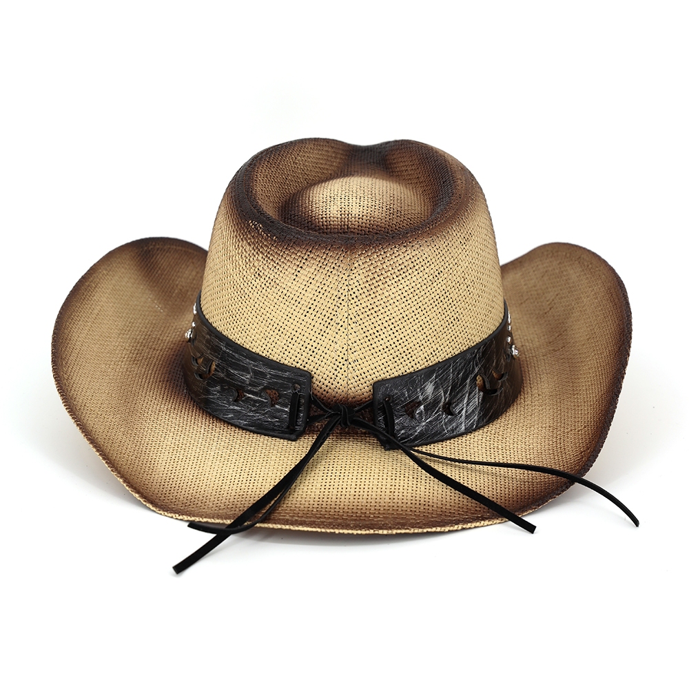 Western Shield Buckle Band Two Tone Straw Cowboy Hat