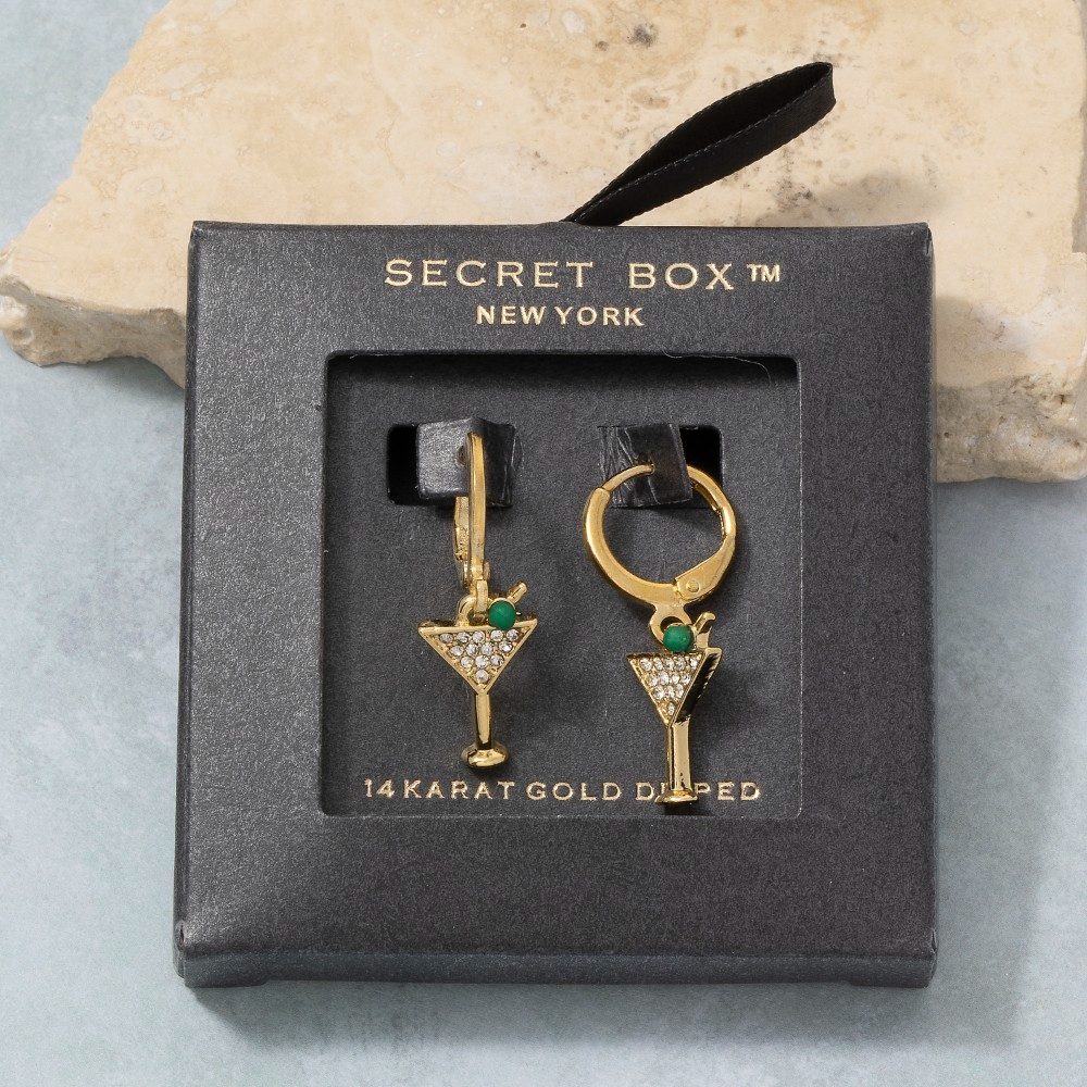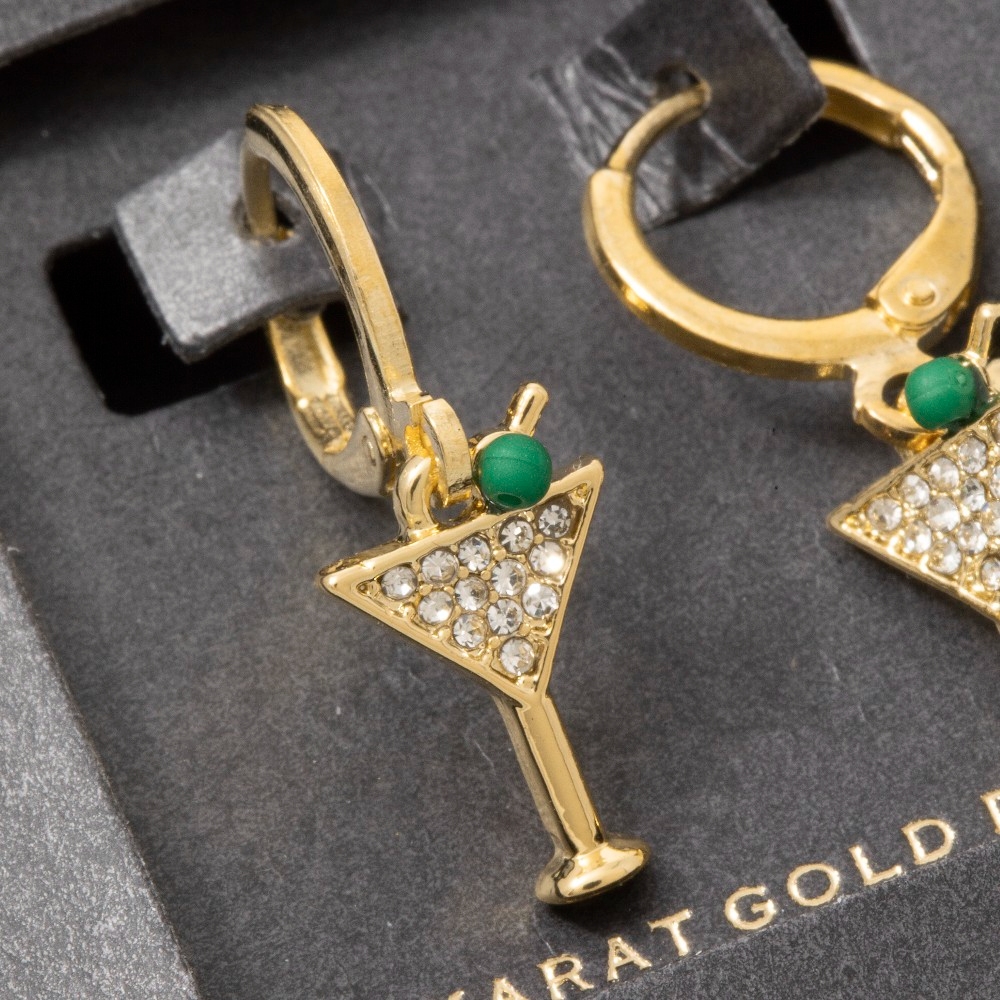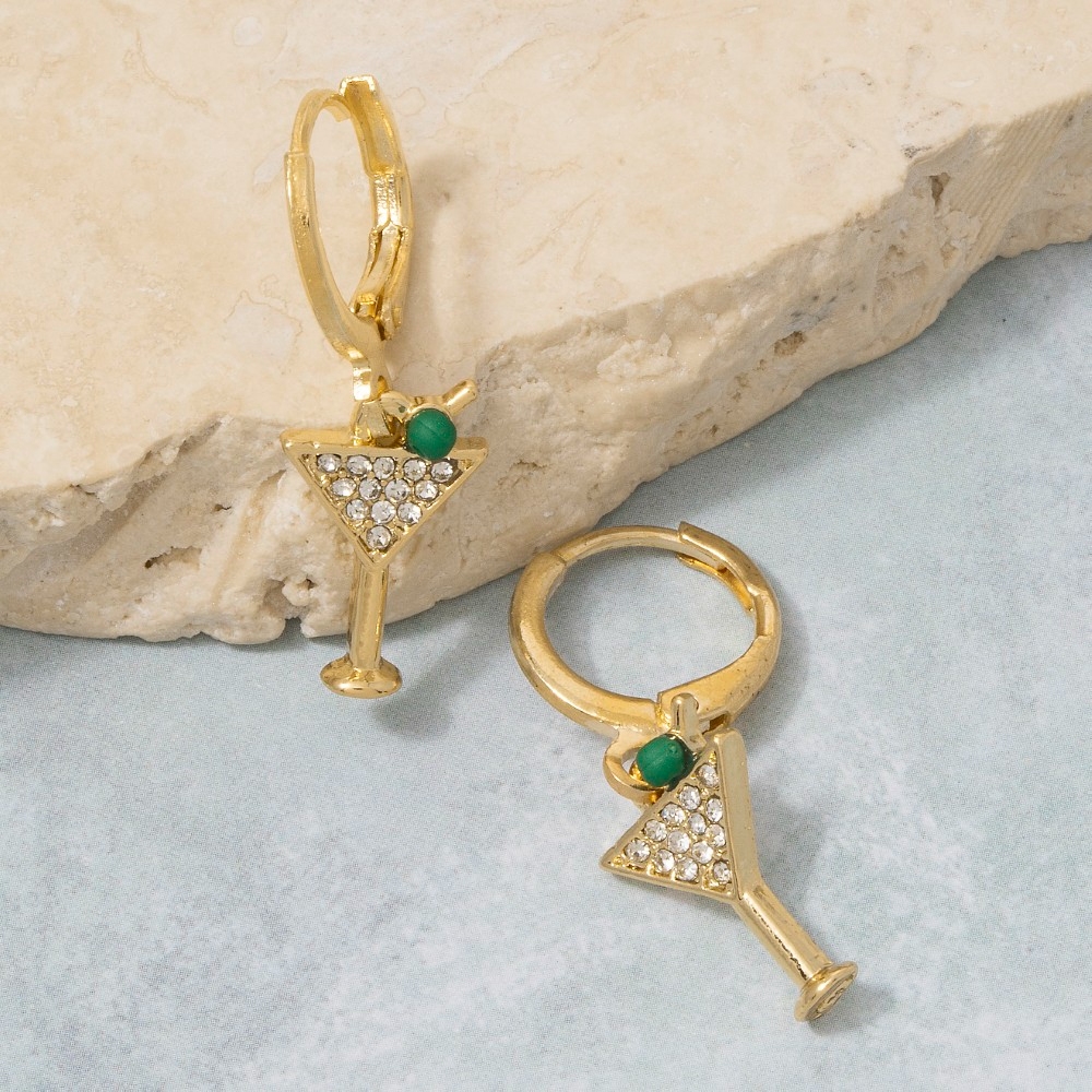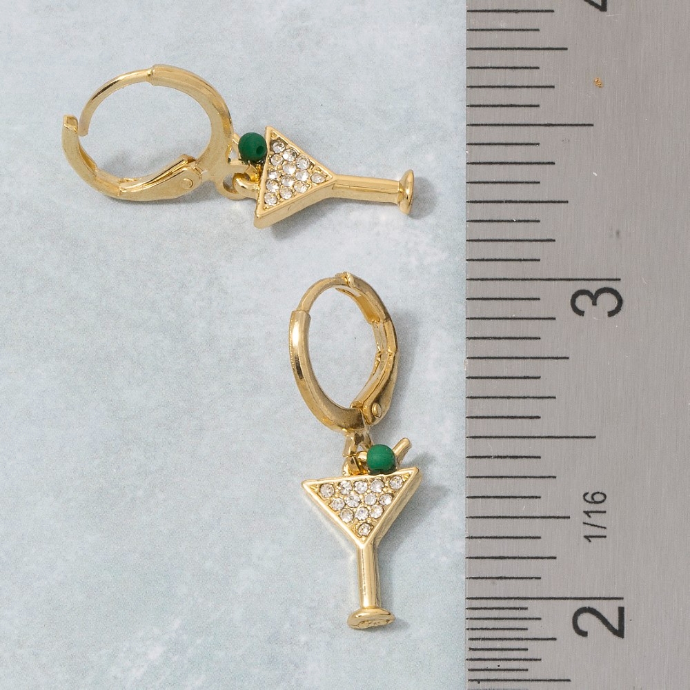 Perfectly polished and endlessly versatile, this pair of earrings reveals an intricate 14k gold dipped cubic zirconia martini charm huggie design. Upgrade your fashion game with this versatile pair of earrings, a timeless addition that complements any outfit seamlessly. Available in GD. This item is sold in packs of 1.