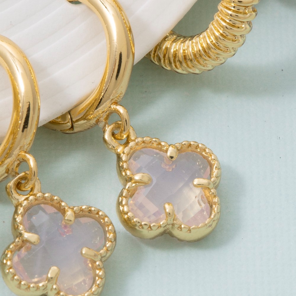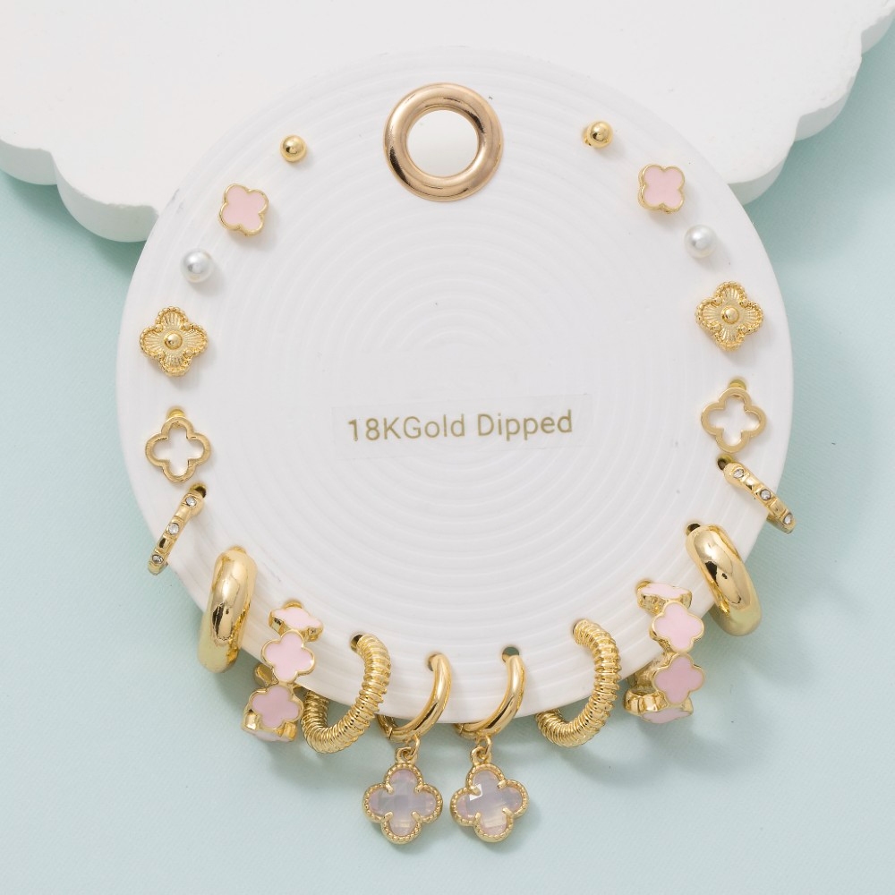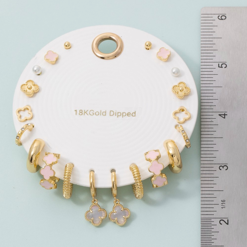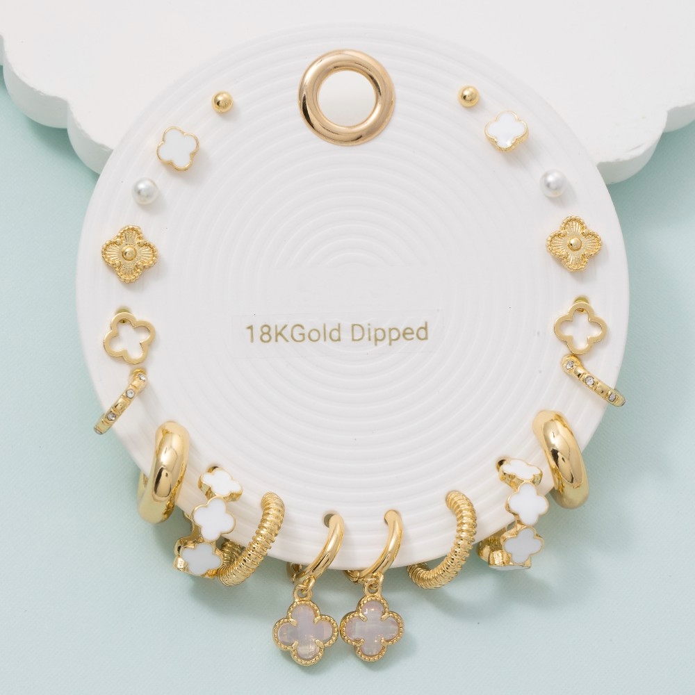 • Perfectly versatile and endlessly stylish, this pair of earrings emanates an elegant 18k gold dipped clover earring set design. Experience the transformative power of this versatile pair of earrings, effortlessly enhancing the overall aesthetic of your outfit. Available in GPK, GWH. This item is sold in packs of 1.