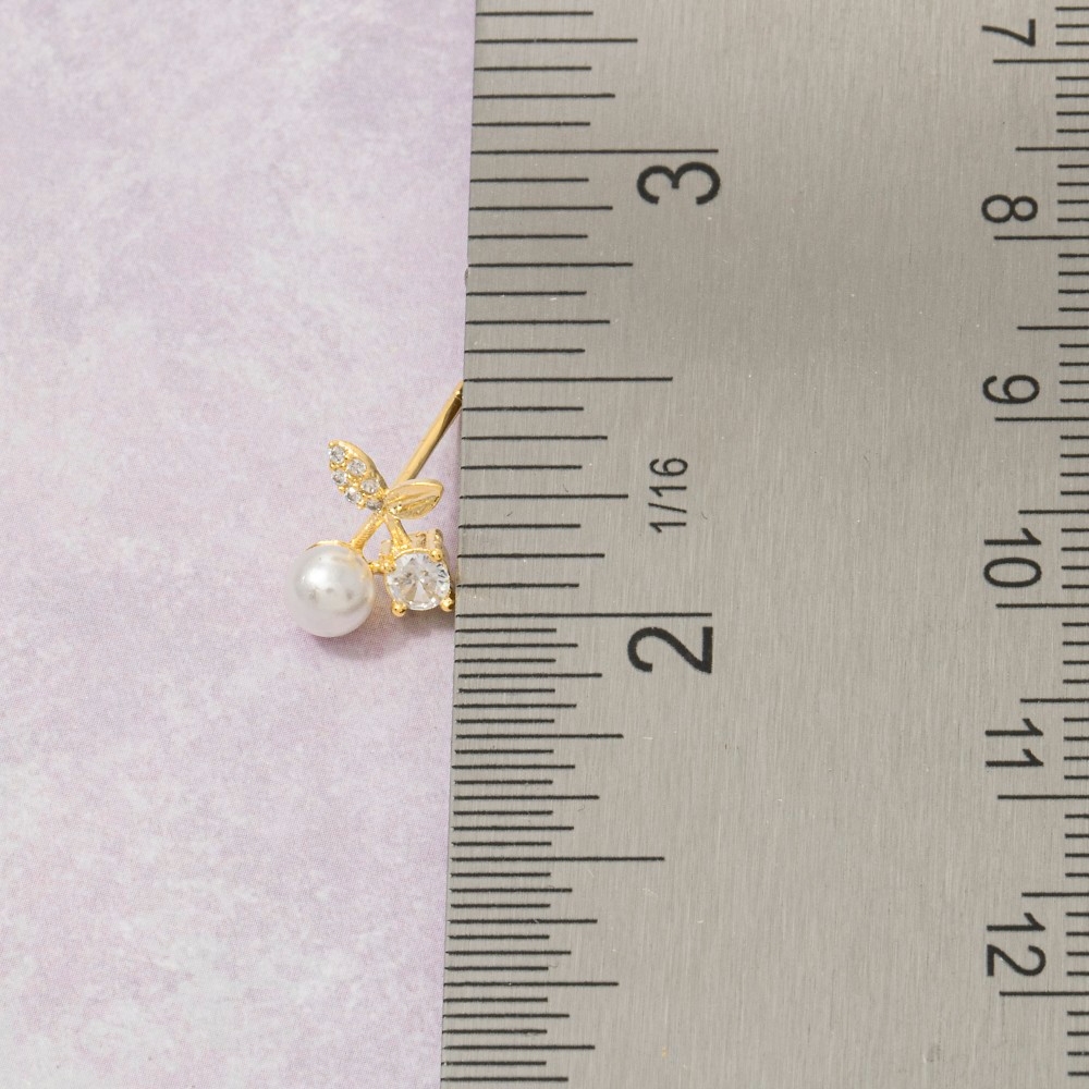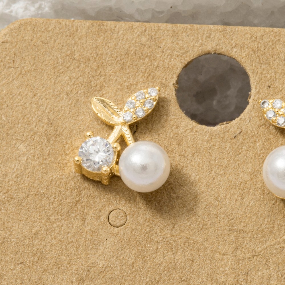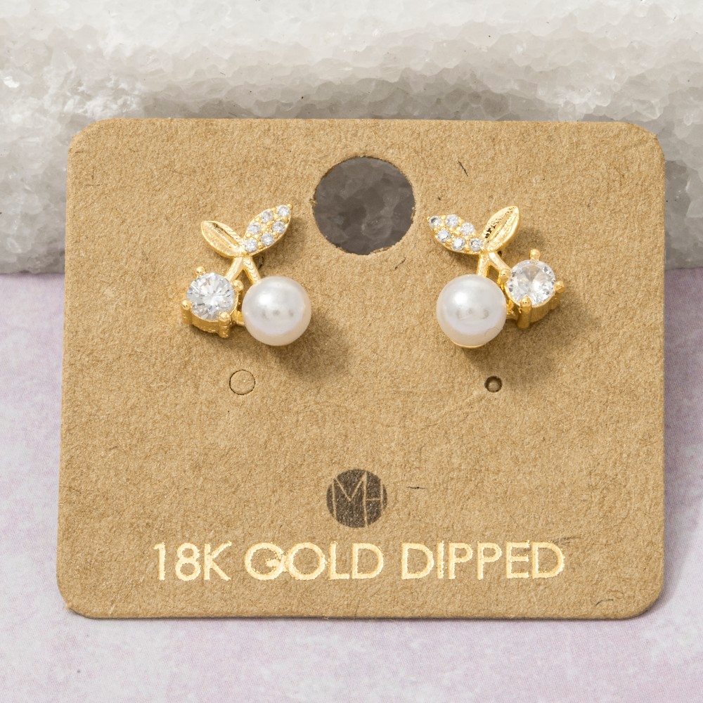 • Perfectly polished and endlessly versatile, this pair of stud earrings emanates an elegant 18k gold dipped pearl cherry design. Perfect for adding some personality and flair to your wardrobe, this pair of stud earrings is a must-have. Available in G. This item is sold in packs of 1.