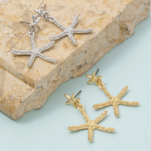 Gold Dipped Double Star Fish Stud Dangle Earrings