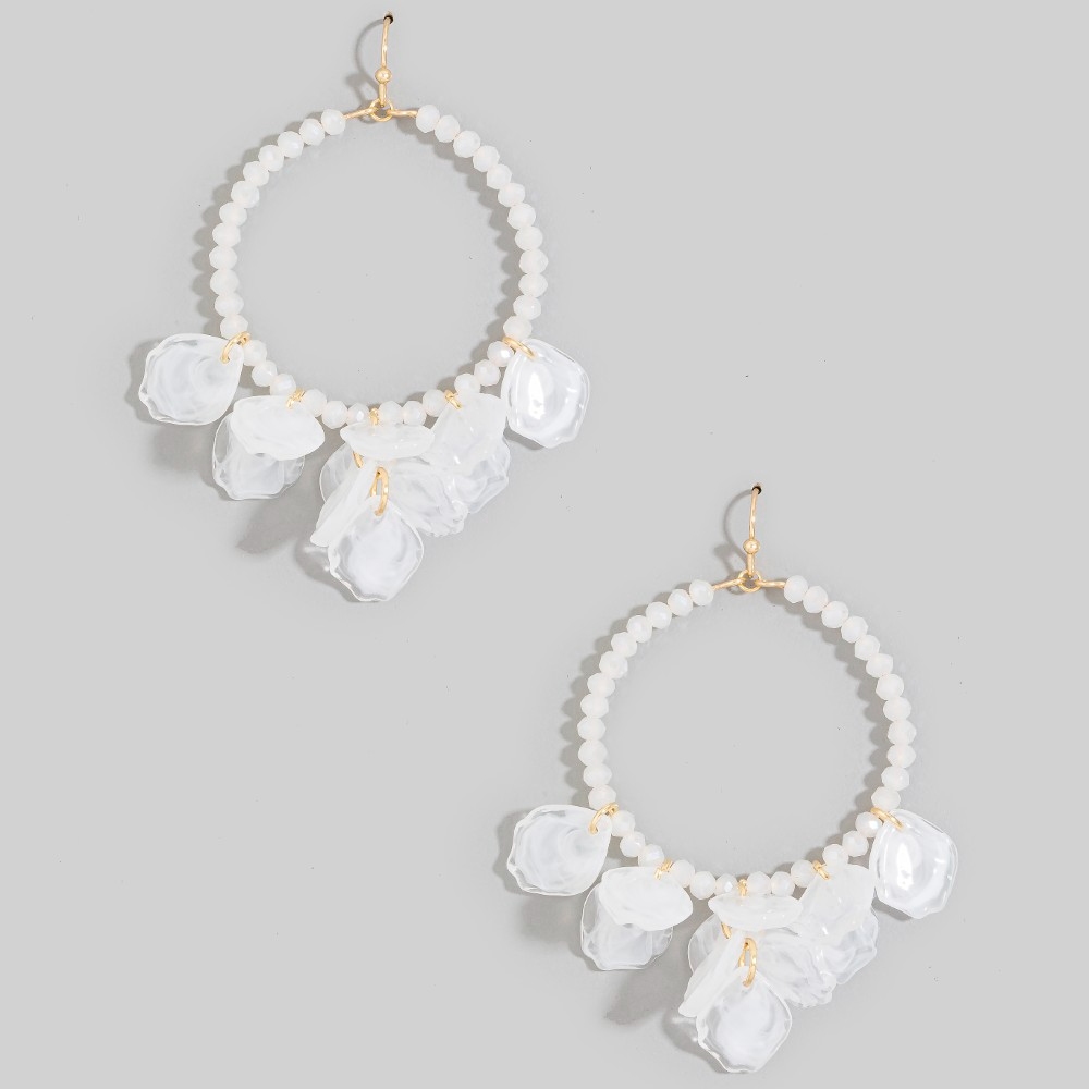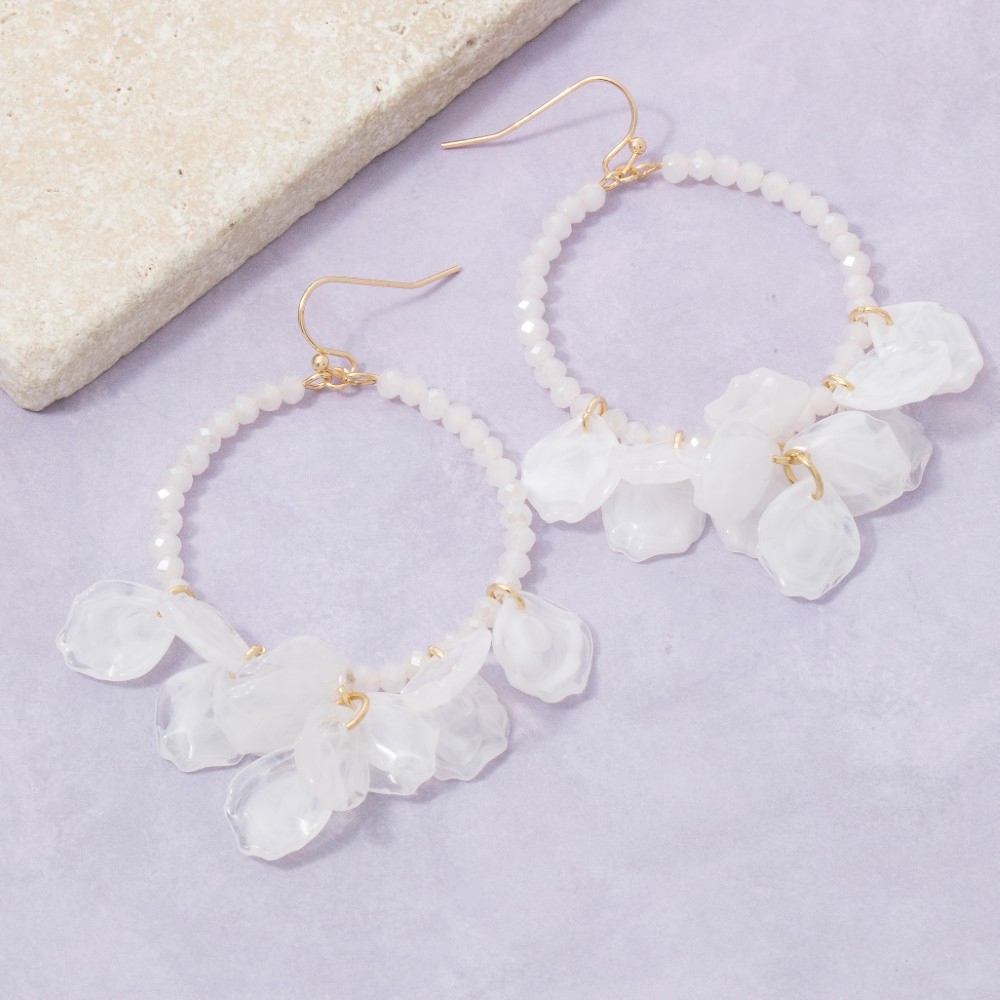 An instant wardrobe staple, this pair of hoop earrings possesses a fine acrylic petals faceted beaded dangle design. A stylish pair of hoop earrings that's perfect for complementing any outfit you wear. Available in GD. This item is sold in packs of 1.