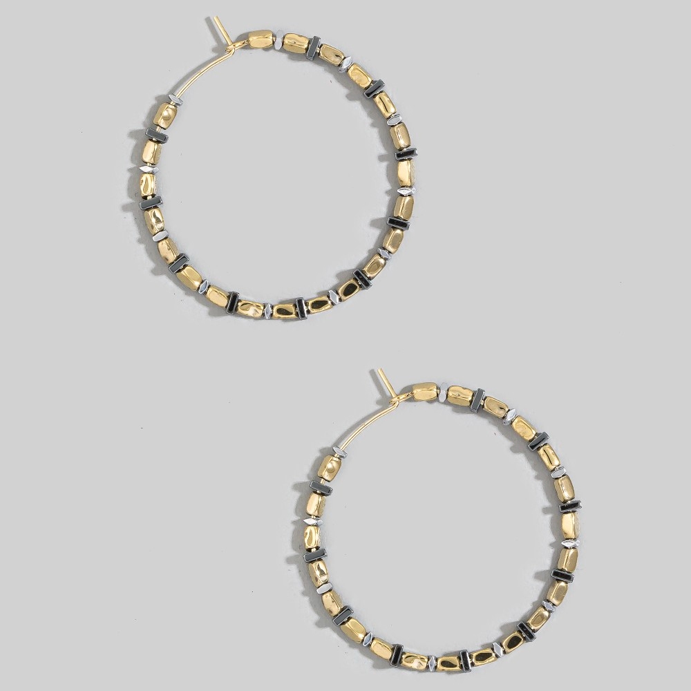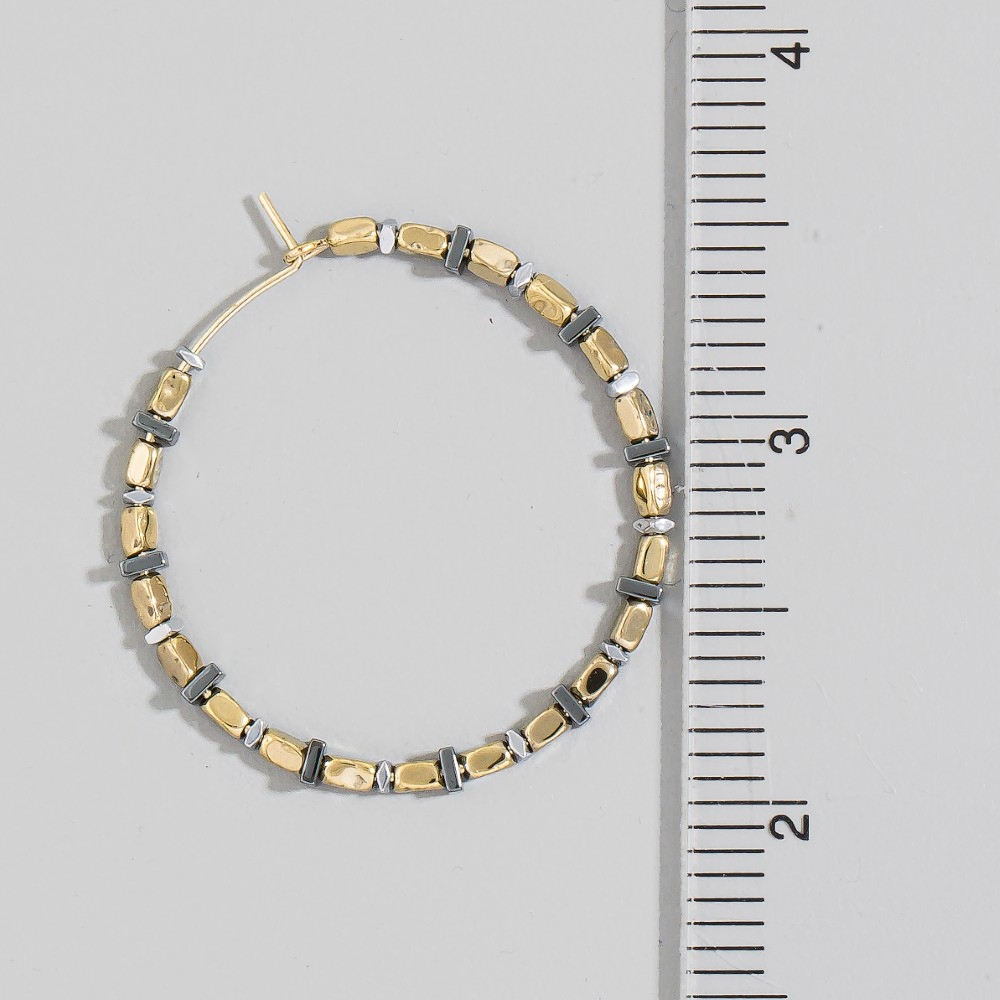 - Effortlessly elevate your outfit, this pair of hoop earrings highlights a special assorted bead design. Perfect for dressing up or down, this versatile pair of hoop earrings adds a touch of sophistication to any look. Available in GOLD. This item is sold in packs of 1.