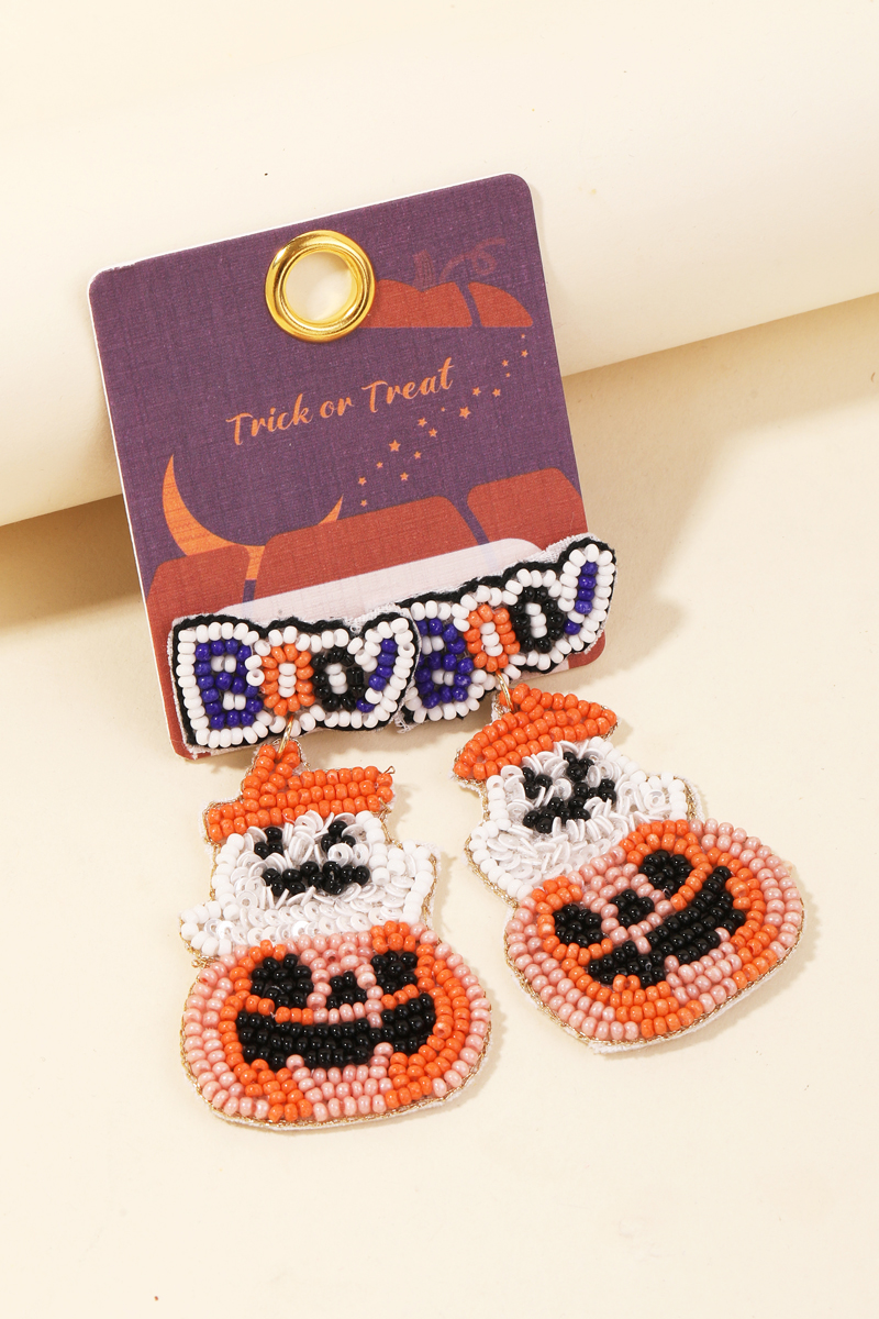 Beaded Jack O Lantern Boo Halloween Earrings