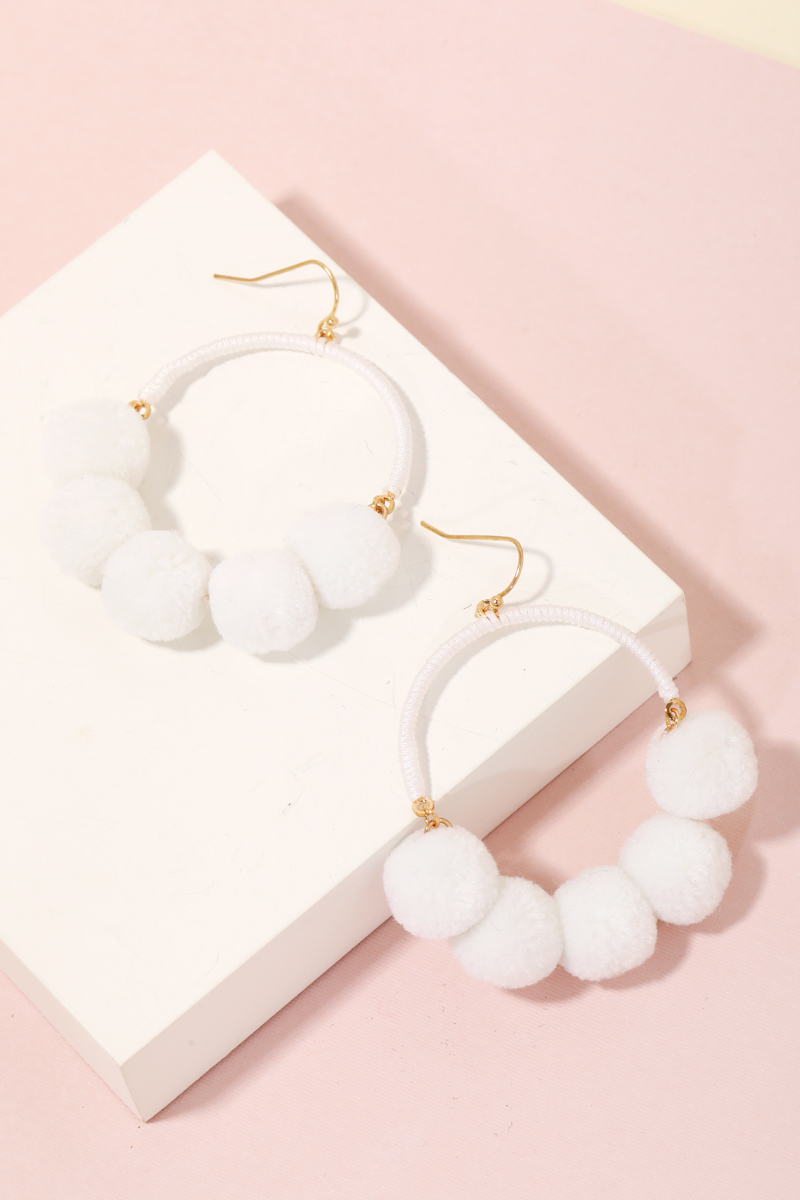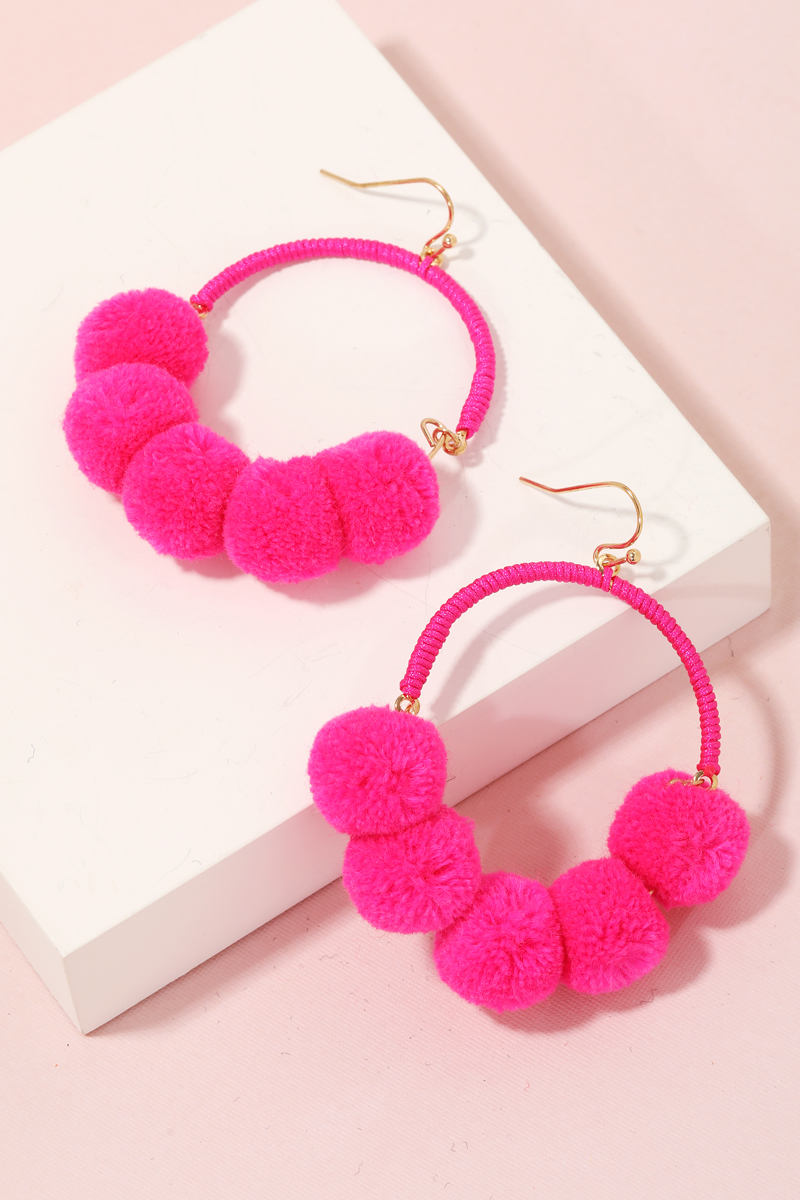 • This piece is perfect for those who want to showcase their unique style, this pair of drop earrings displays a unique fuzzy beaded hoop drop earrings design. The perfect way to complete any outfit, whether you're dressing up or keeping it casual. Available in BLK, IVMUL, LAV, NPK, RED, TQ and WHT. This item is sold in packs of 1.