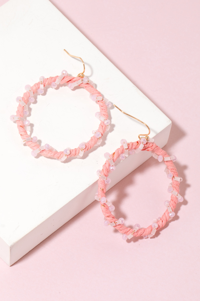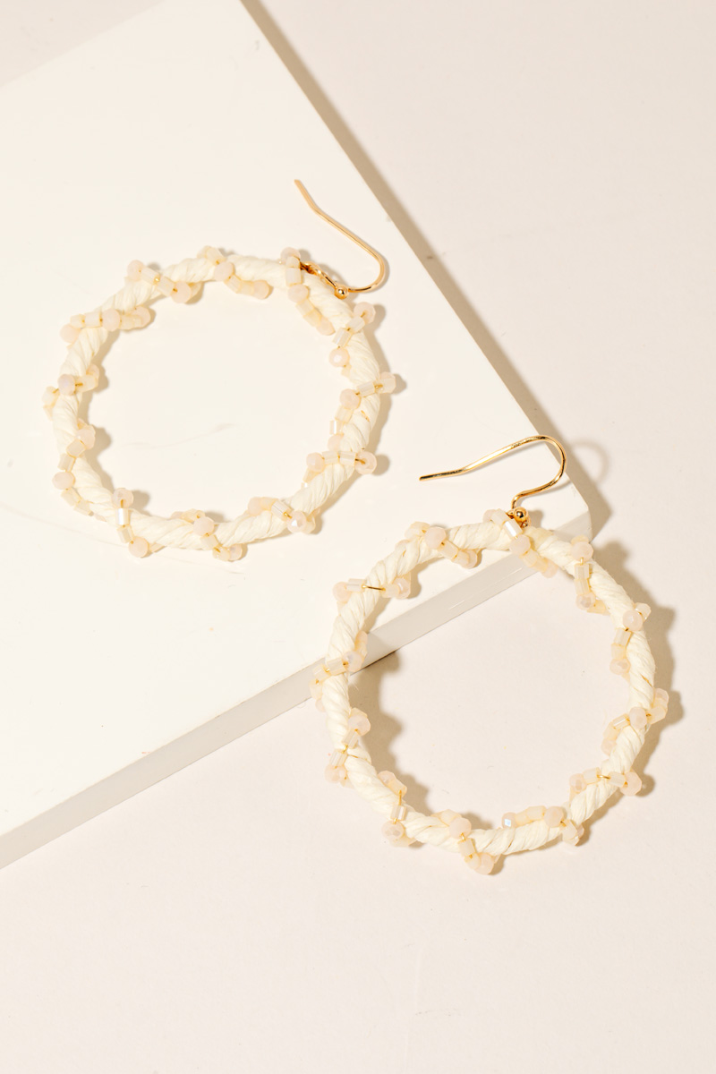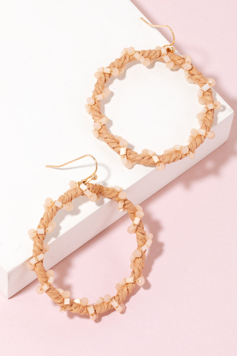 Beaded Edge Raffia Hoop Earrings