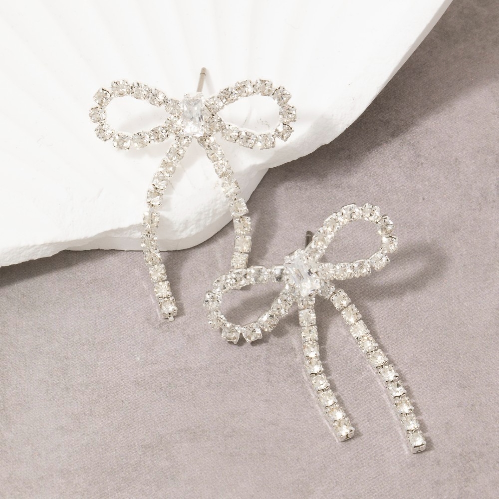 Add some edge to your wardrobe, this pair of drop earrings emanates an elegant crystal rhinestone bow design. Transform your outfit from ordinary to extraordinary with the touch of elegance provided by this versatile pair of drop earrings. Available in FSCRYF. This item is sold in packs of 1.