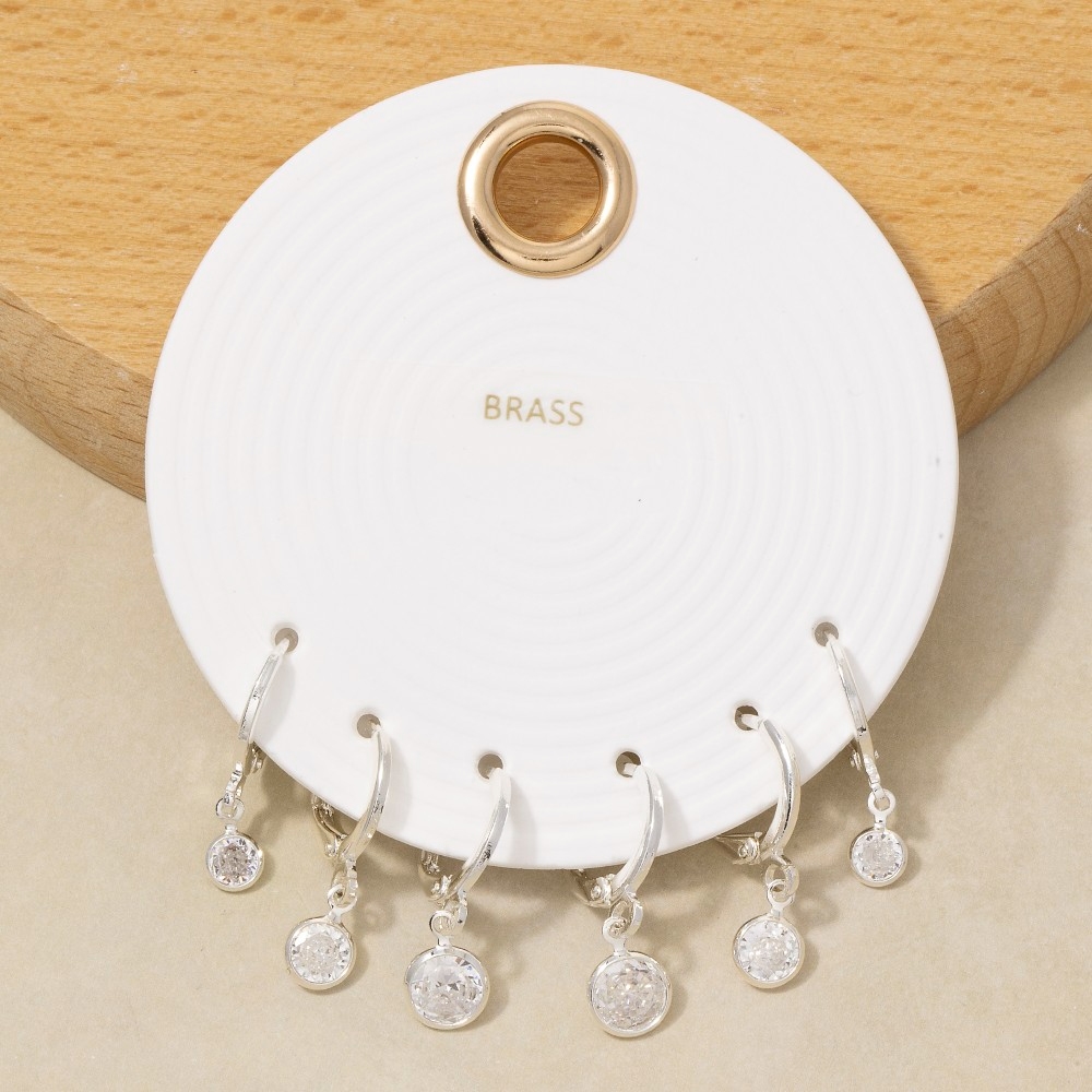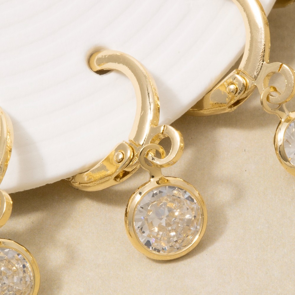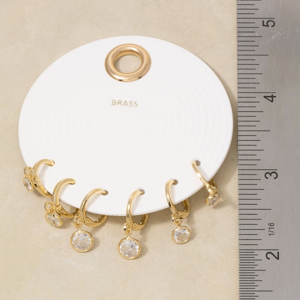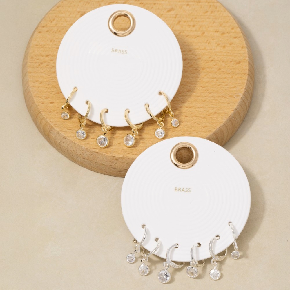 This season's must-have pair of earrings, this pair of earrings comes with a special cz bezel drop charm hoop earring set design. Elevate your fashion IQ with this versatile pair of earrings, designed to seamlessly integrate into any style profile. Available in GCL, SCL. This item is sold in packs of 1.