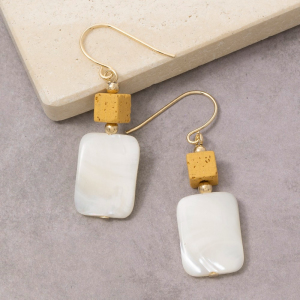 Gold Cube Bead Mother Of Pearl Drop Earrings